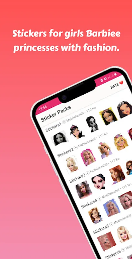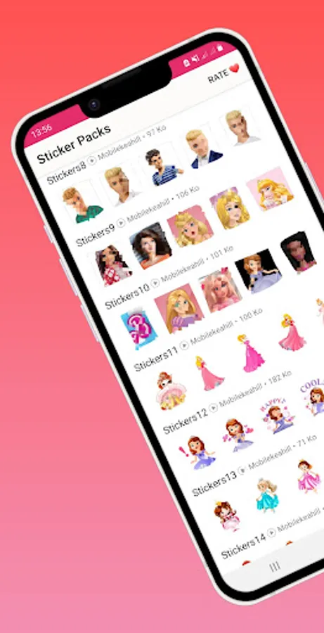 Barbiee princess stickers app contains a lot of categories, including male and female, here you will find what you are looking for.