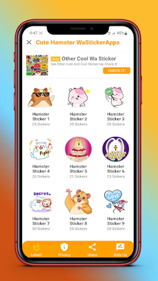 1. Contains thousands of Cute Hamster stickers for wastickerapps.
