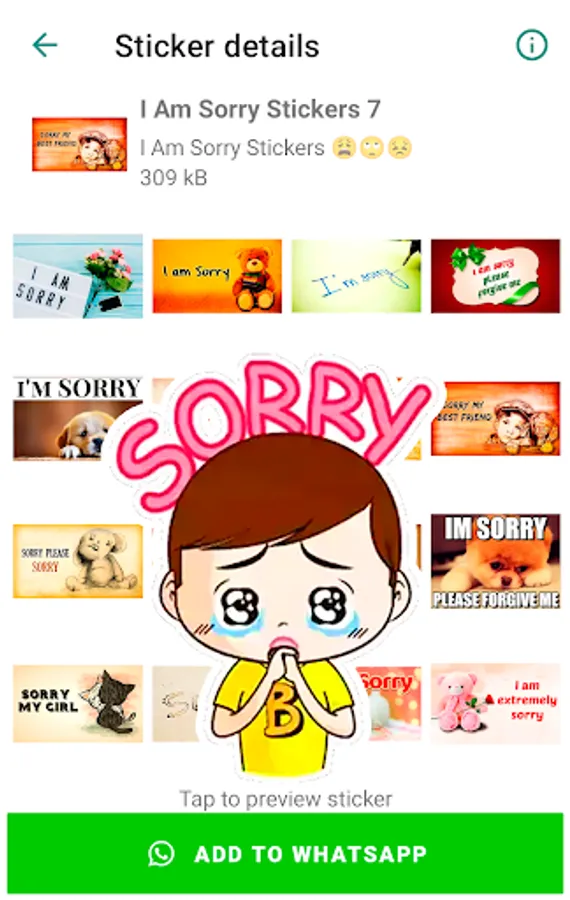 All of these packs of apology stickers are offered for free, and you can ask your loved ones, family and friends for forgiveness! You can send beautiful sorry stickers with images directly to WhatsApp WAStickerApps.