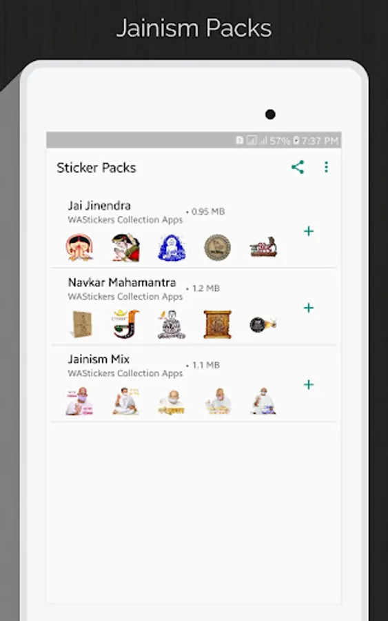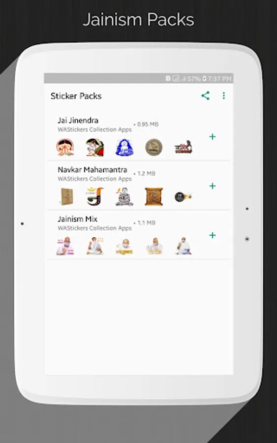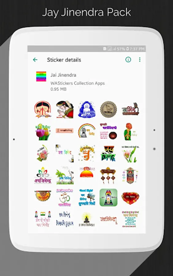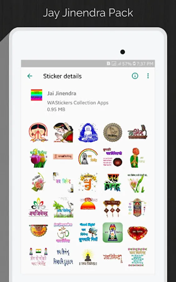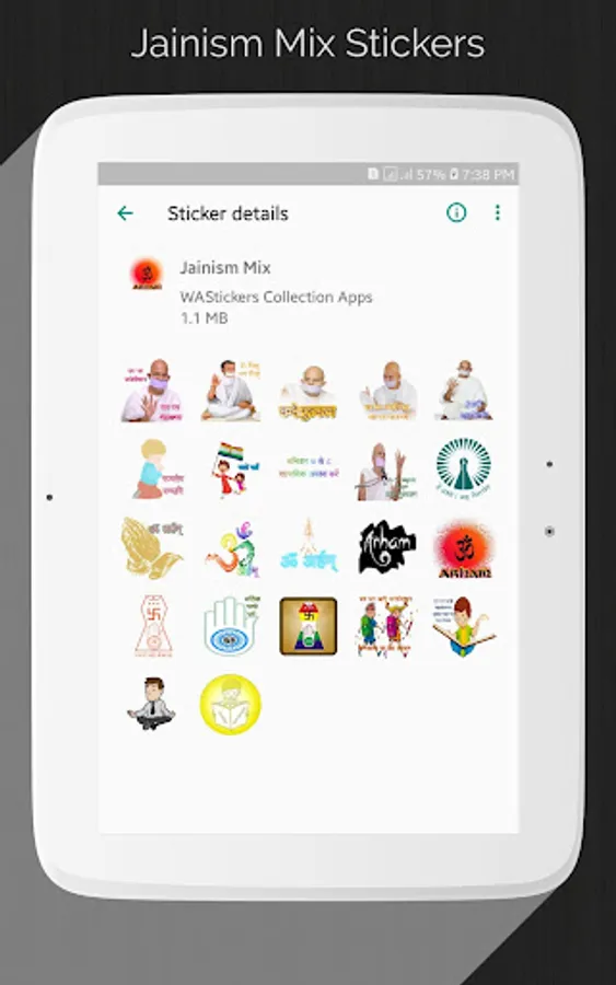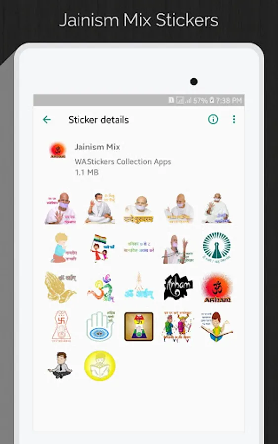 This application allows to use best collection of Jain stickers for WhatsApp and you can easily add the stickers to WhatsApp by just one click.