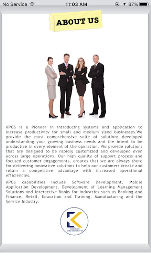 Kenric Pearce Global Solutions is an IT Company which is a Pioneer in introducing systems and application to increase productivity for small and medium sized businesses. This mobile app will help you to find the suitable service for your need within few taps and contact us directly using the application.
