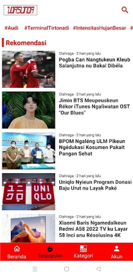 The Wasunda application is a news application in the form of a car that can be downloaded through the Playstore. Wasunda can also be accessed at the website address https://wasunda.com