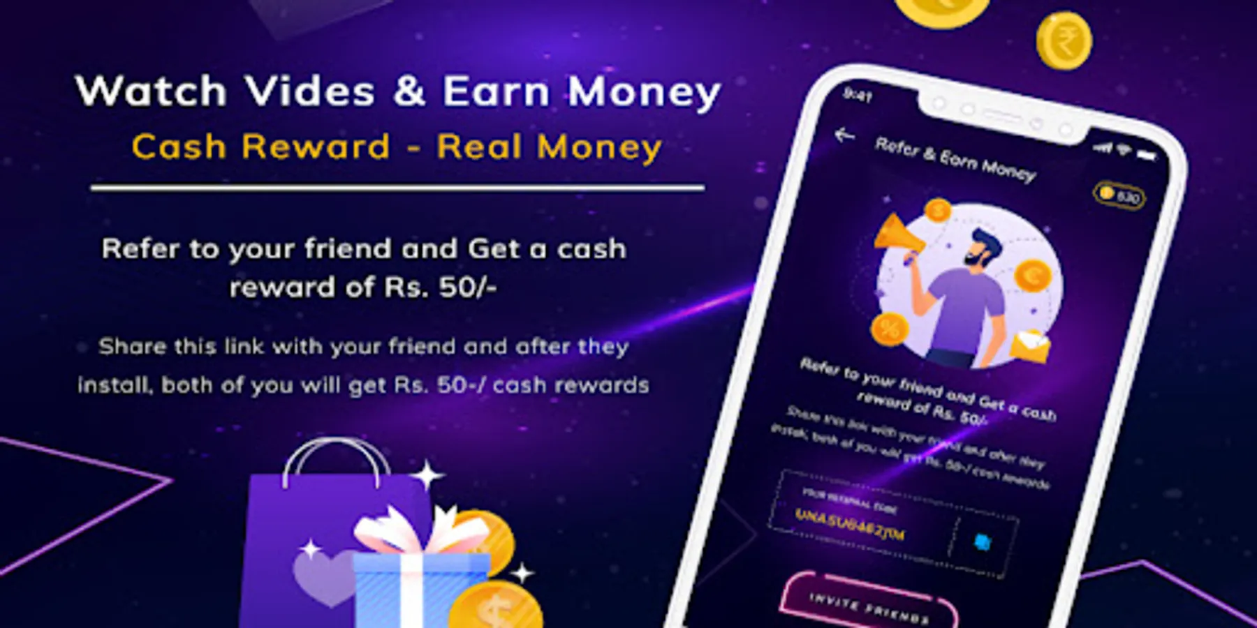 Spread the word and invite your friends to join Daily Watch Video Earn Money. For every referral, you'll earn additional bonuses and increase your earning potential. The more friends you refer, the more you can earn together!