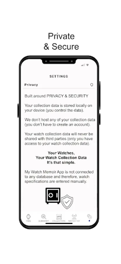 Unlike other watch apps, My Watch Memoir is built around PRIVACY & SECURITY. All your watch collection data is stored locally on your device (you control the data), we don’t host any of it (reason why you don’t have to create an account), and your watch collection data will never be shared with third parties (only you have access to it). YOUR WATCHES, YOUR WATCH COLLECTION DATA. IT'S THAT SIMPLE. The app also allows collectors to export & import data backups. My Watch Memoir App is not connected to any database and therefore, watch specifications are entered manually.