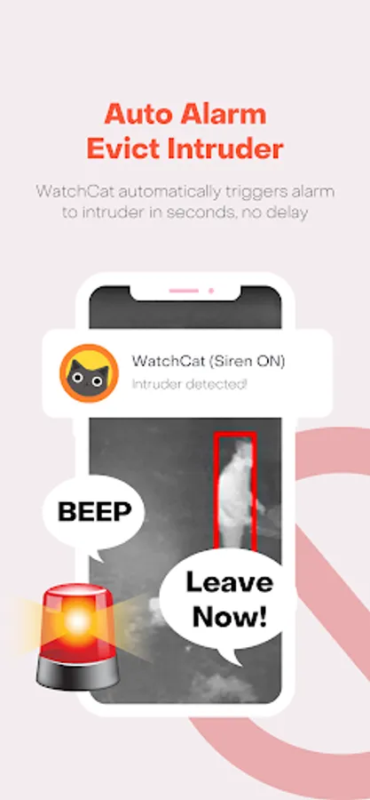 When WatchCat sees the intruder, the siren will be turned on automatically. (The siren sound can be customised)