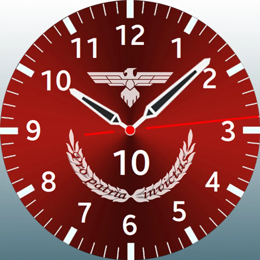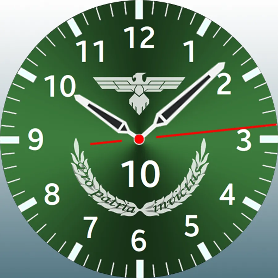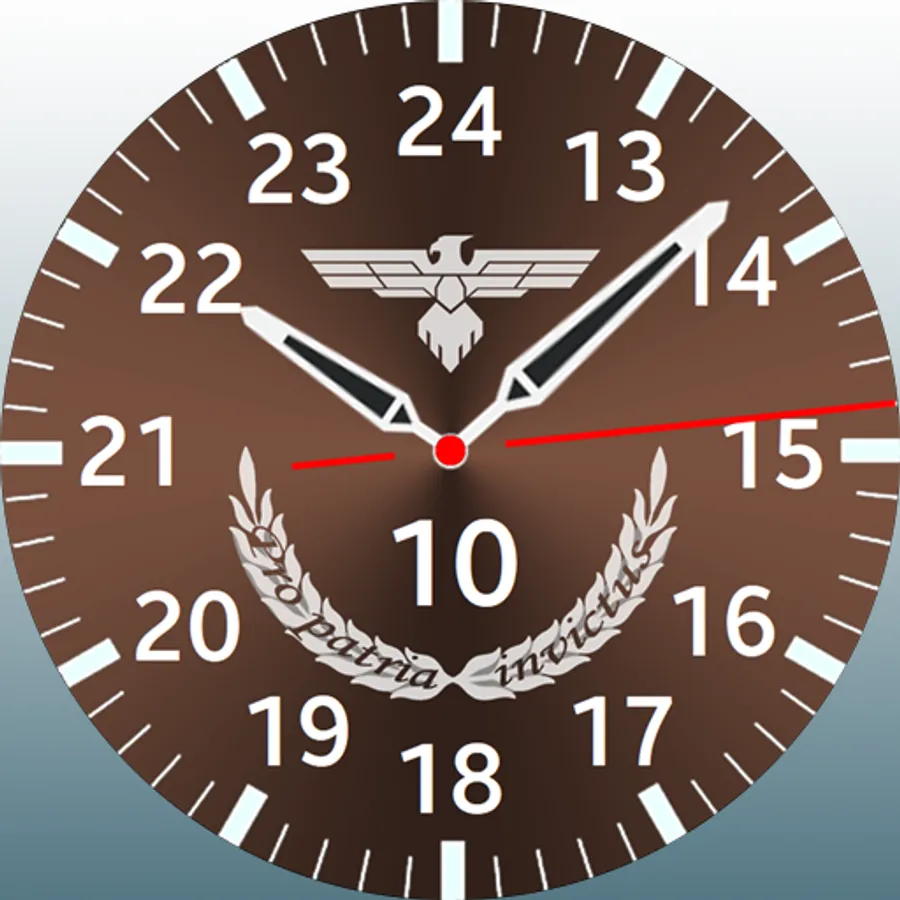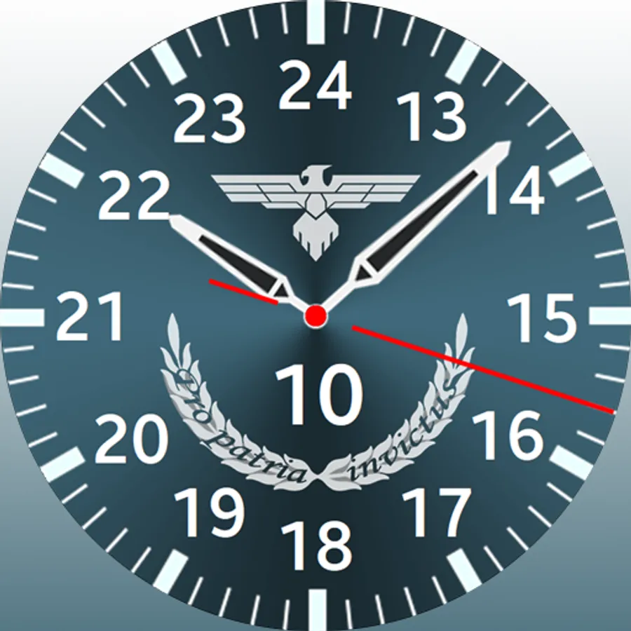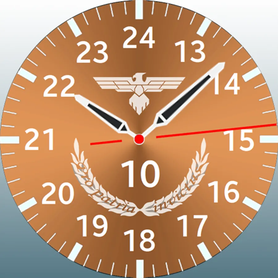 An analog watch face for Wear OS with 24-hour military time. The numbers on the dial change at noon and at midnight. 9 changeable background colors.