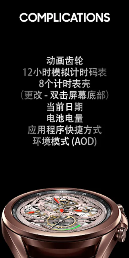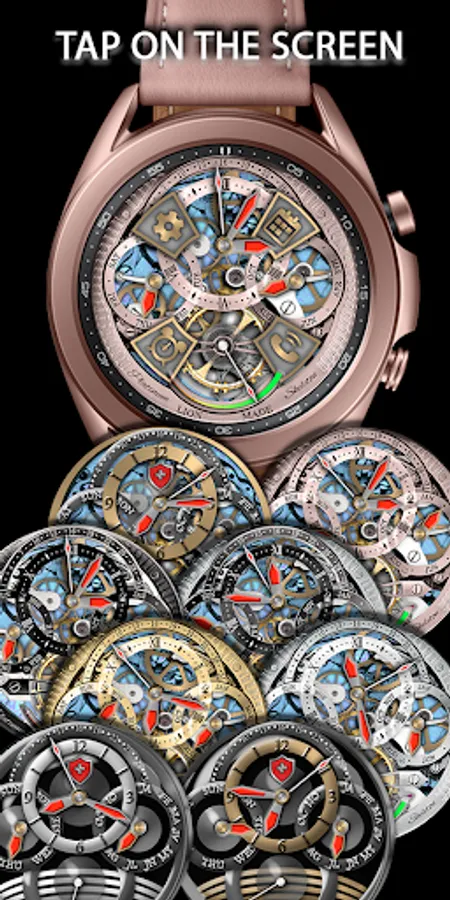 8 different cases to choose from change by double tapo on the edge of the watch screen.