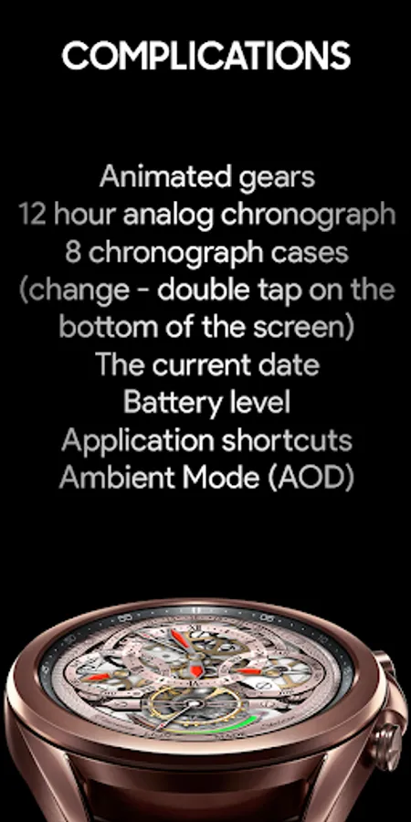 8 cases of chronograph (remember - double tap on the edge of the screen)