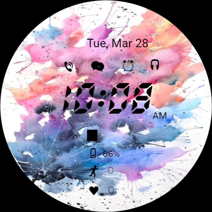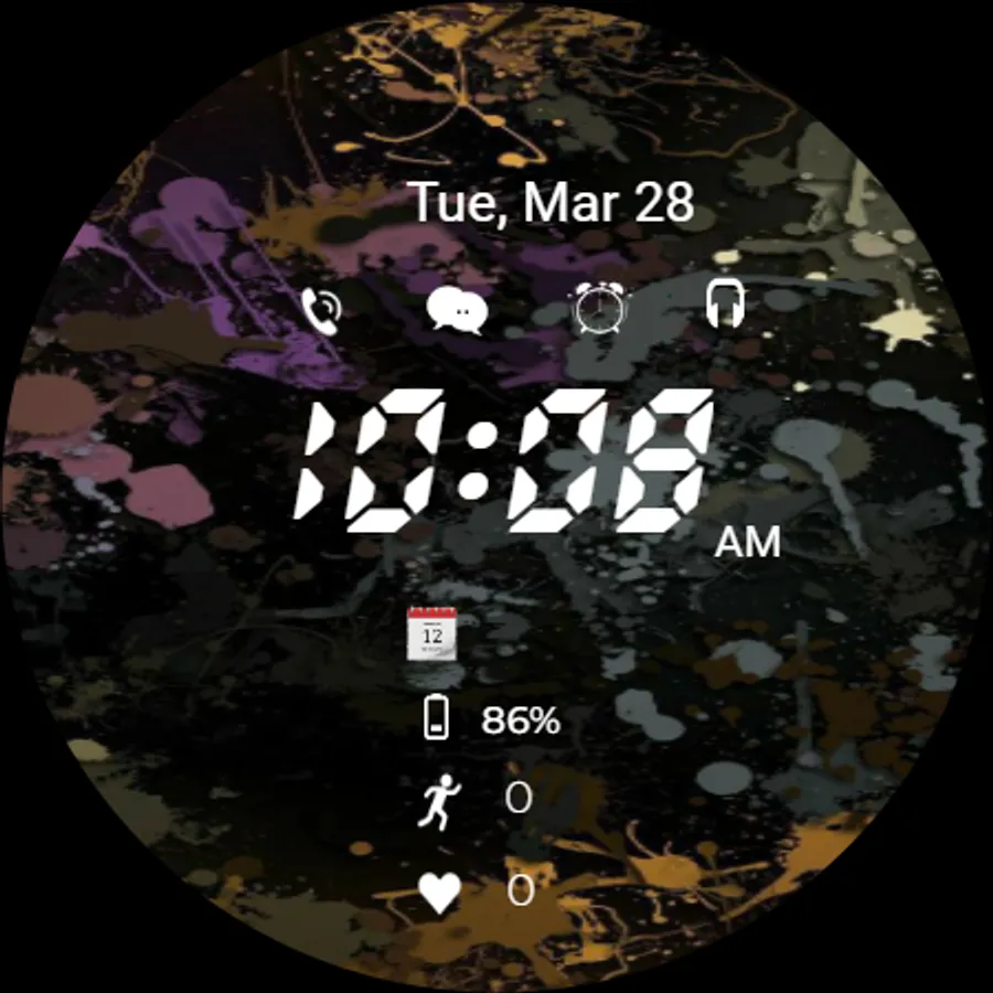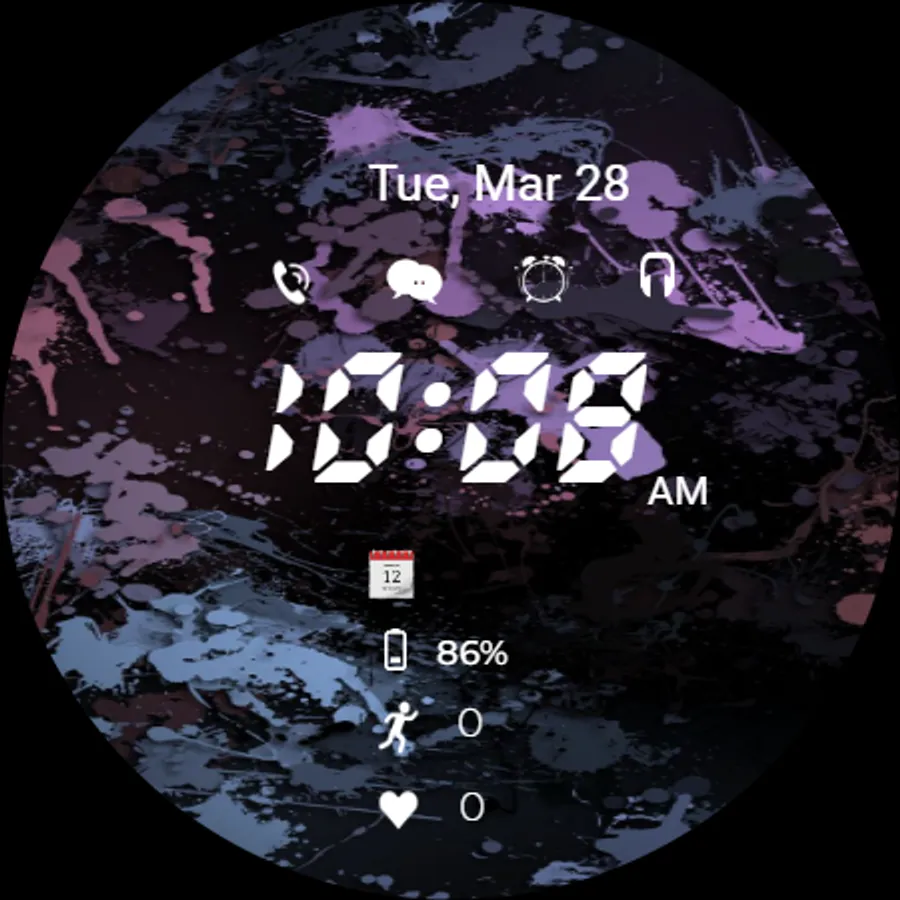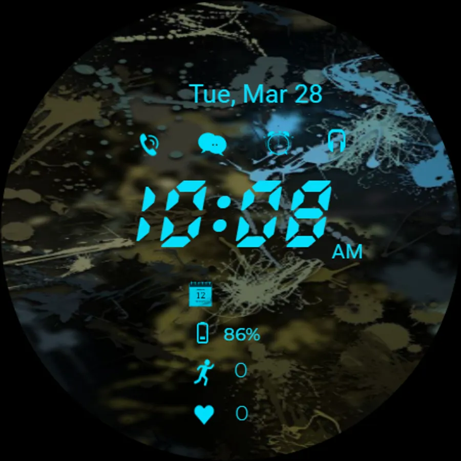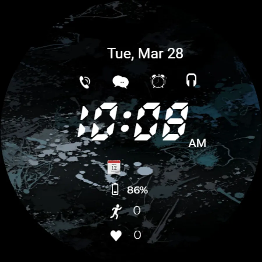 Black digital watch face for android wear OS