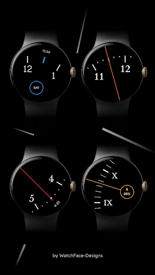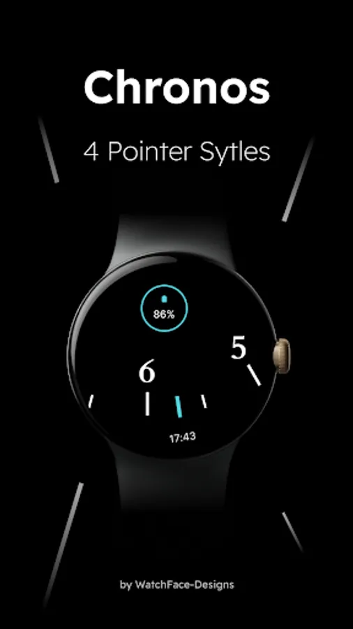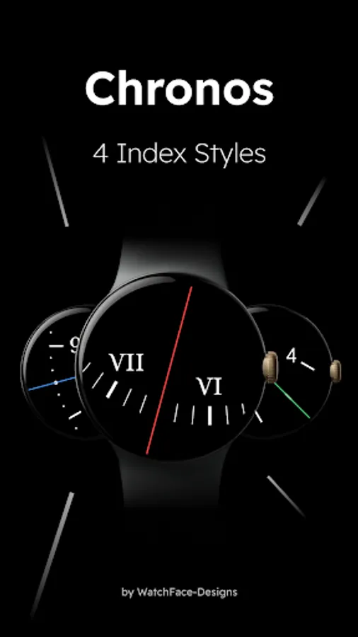 This Watch Face offers a very unique and minimalistic design. The watch index itself rotates to display the time.