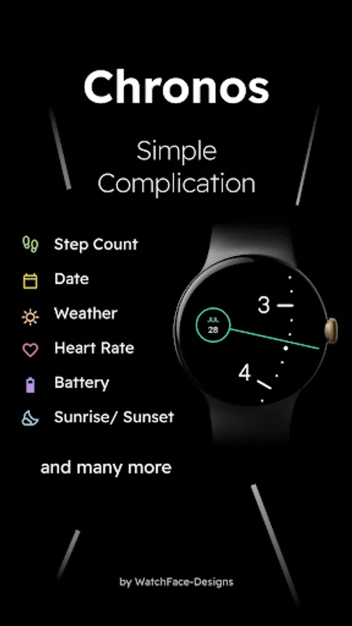 Additionally Chronos comes with a simple complication which can display informations like the heart rate or the battery state.