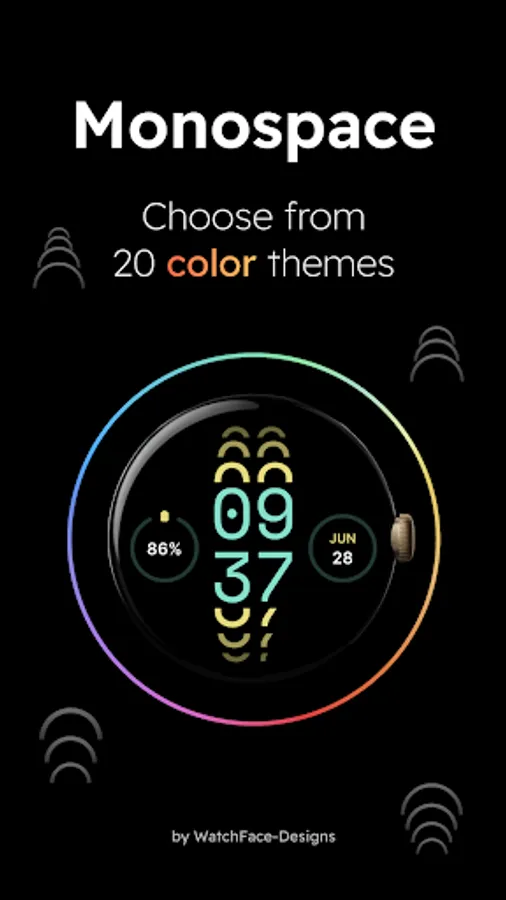 The best way to make customize this watch face is trough changing the color theme. Monospace comes with 20 beautiful color themes to make the watch face feel fully yours.