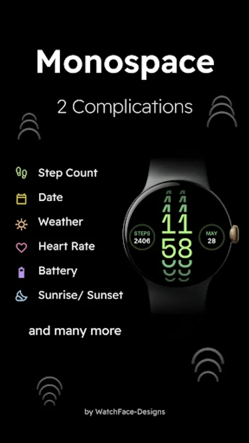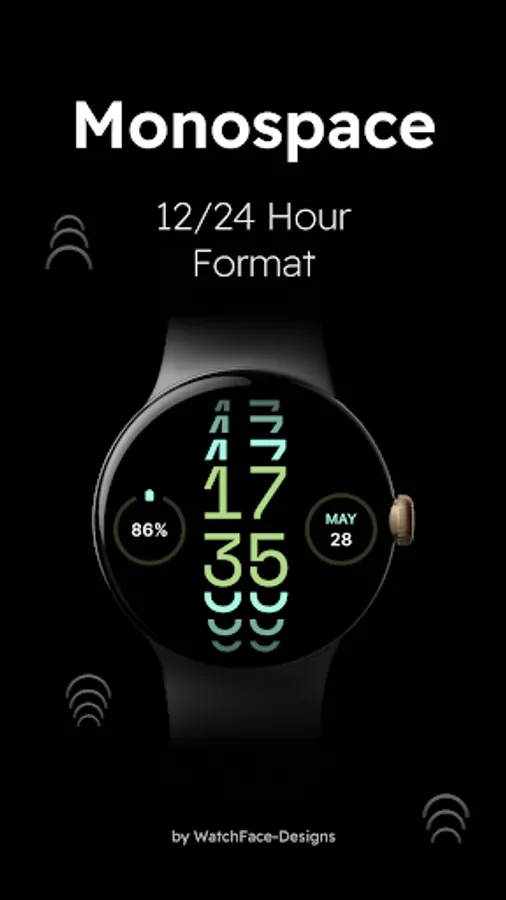 Monospace - Digital Watch Face offers a very clean and minimalistic design. A playful digital watch face combined with 2 complications.