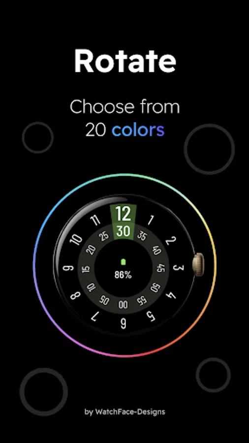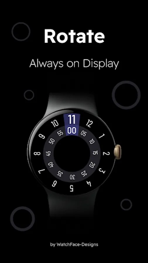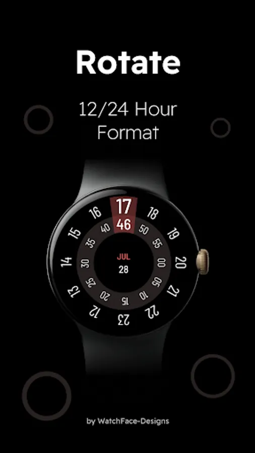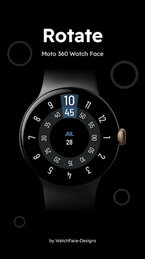 Rotate is a Wear OS watch face, which comes with a unique design, inspired by the Moto 360. So huge shout out to the designers of the watch face!