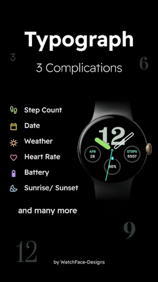 Typograph is a minimalistic watch face for Wear OS devices.