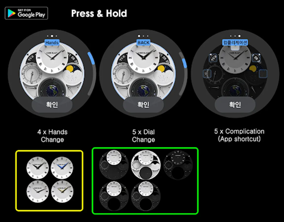 5 개의 배경 변경 (화이트와 블랙의 색상및 6시 크로노의 색상 차이가 있습니다)