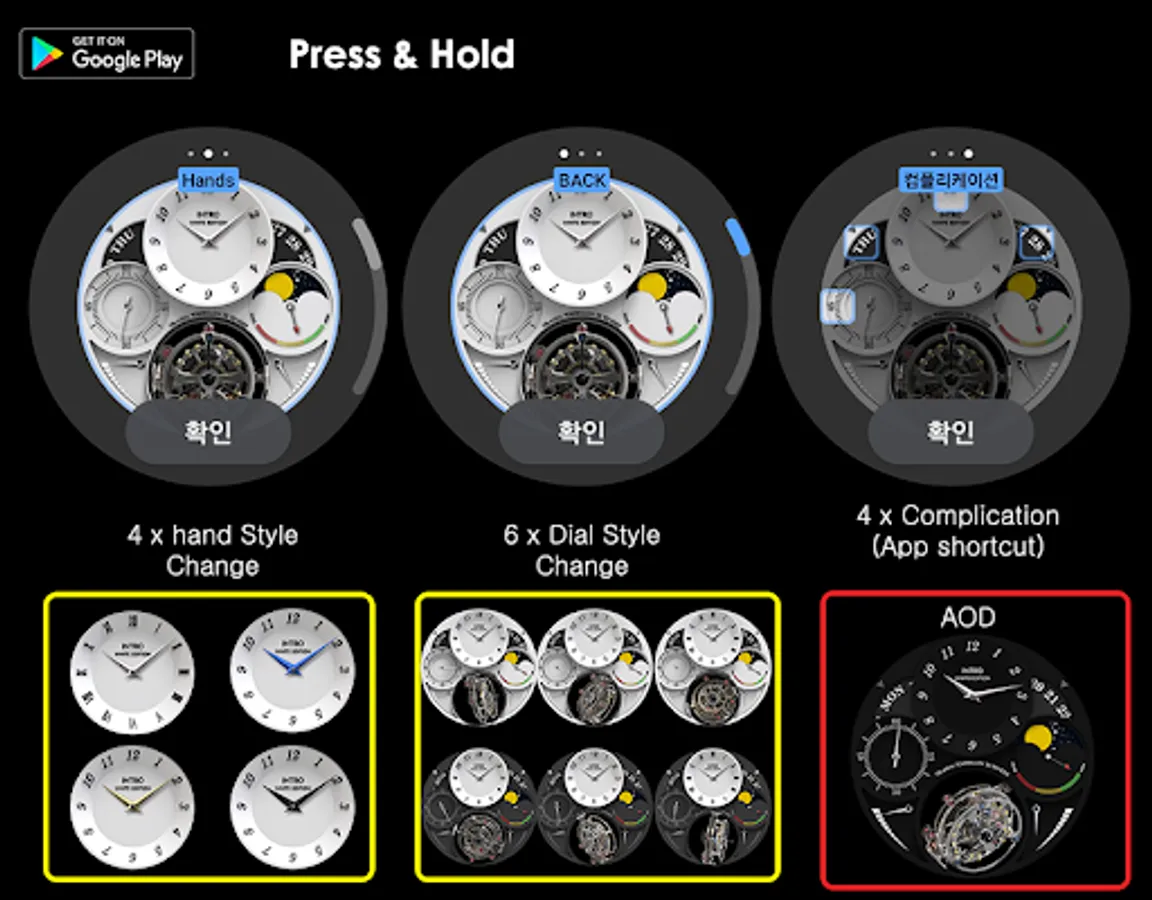 4개의 핸즈 색상 변경 (실버, 블루, 골드, 검정)