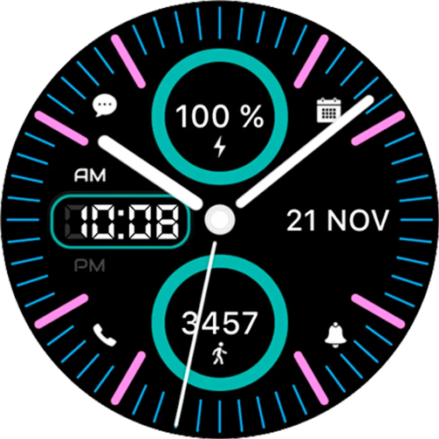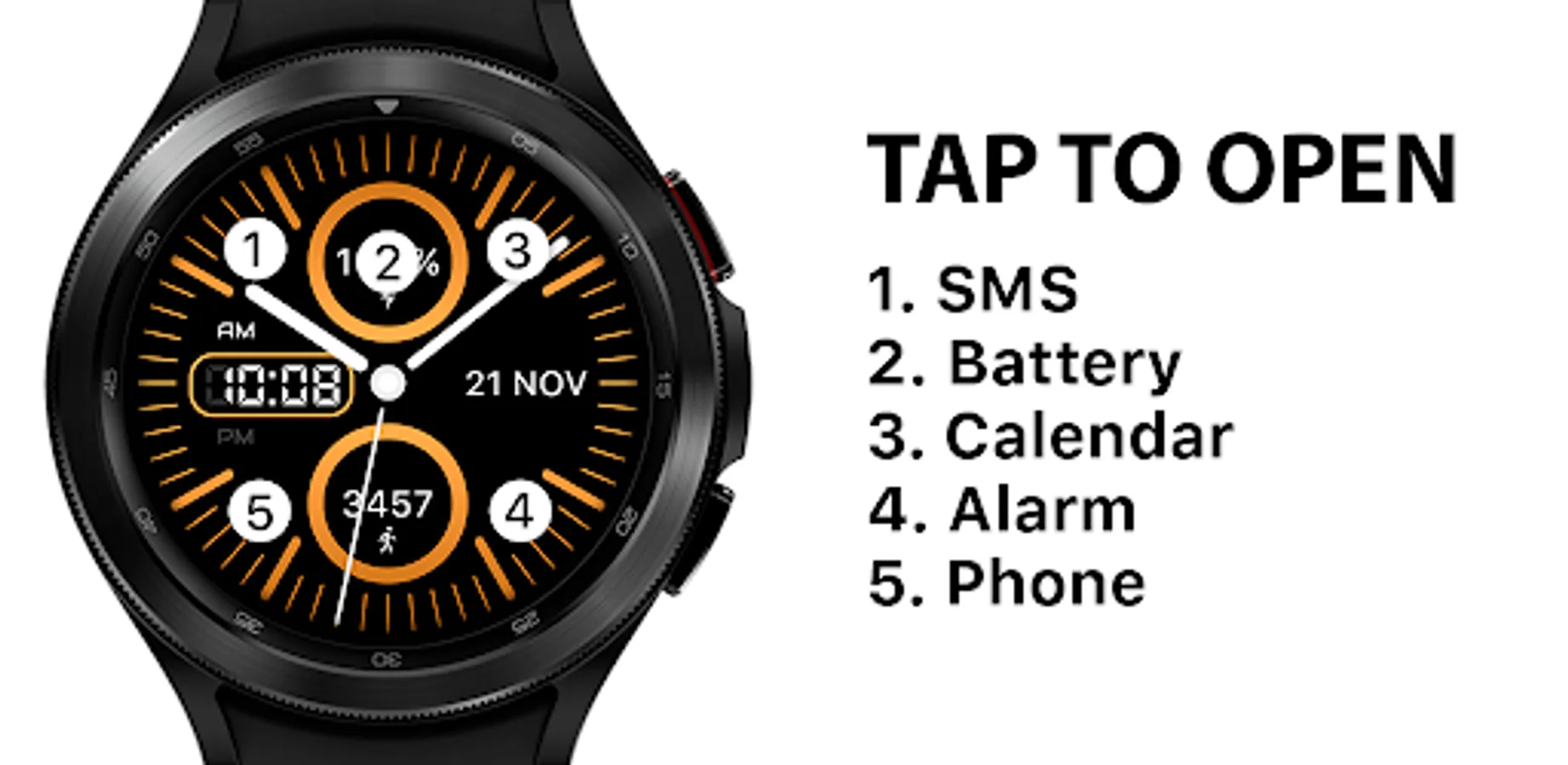 The device that knows you best. That is why I have developed a watch face that will be a great companion on the road to success. Track your fitness progress with a pedometer. New day new color of the dial. The color changes when you touch the screen. Enjoy a wide variety of widgets, from alarm to calendar. Phone and SMS are always at hand.