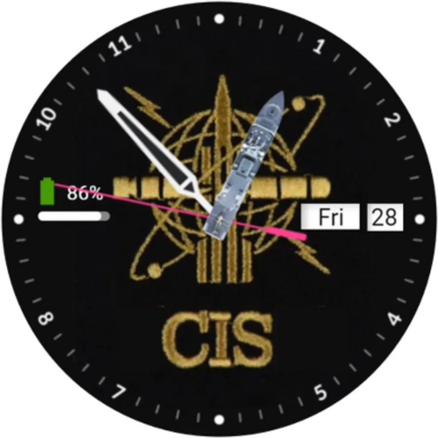 The Communications Information Systems (CIS) watch face is designed to cater to General Service and Submarine service ratings. This watch face offers a unique visual experience with its innovative features. As you glance at your wrist, you will notice the hour hand adorned with either a Type 26 Frigate, symbolizing the significance of CIS, or for CISSM (Communications Information Systems Submarine), the hour hand proudly showcases an Astute class submarine, capturing the essence of submarine service.