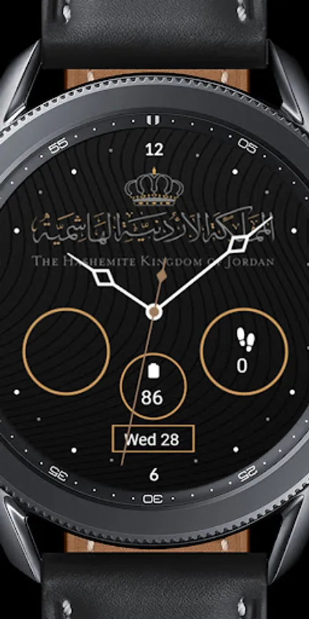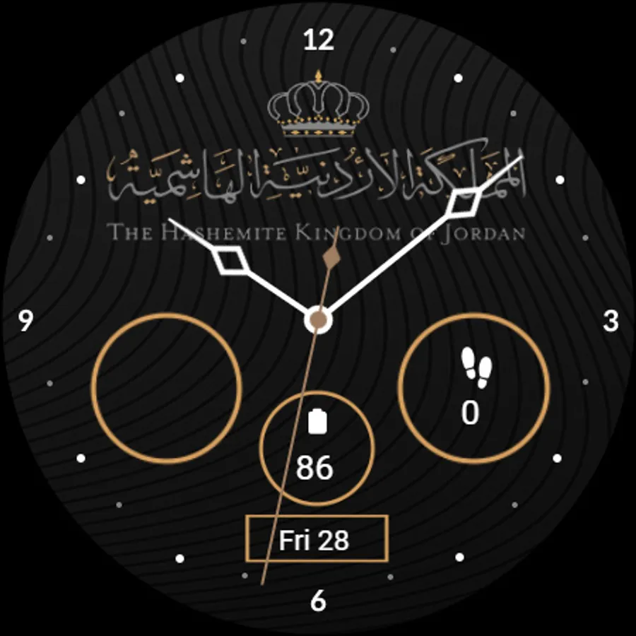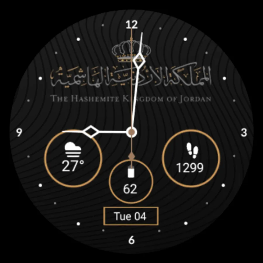 تتميز الساعة بوجود التاج الأردني الملكي على وجهها، مما يشير إلى رمزية وجمالية المملكة الأردنية الهاشمية. كما تحمل كلمة "المملكة الأردنية الهاشمية" لتعزيز هويتها الأردنية الفريدة والثقافة الغنية للمملكة.