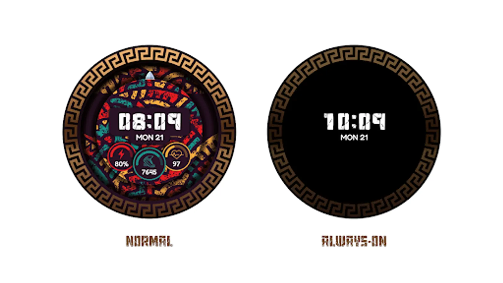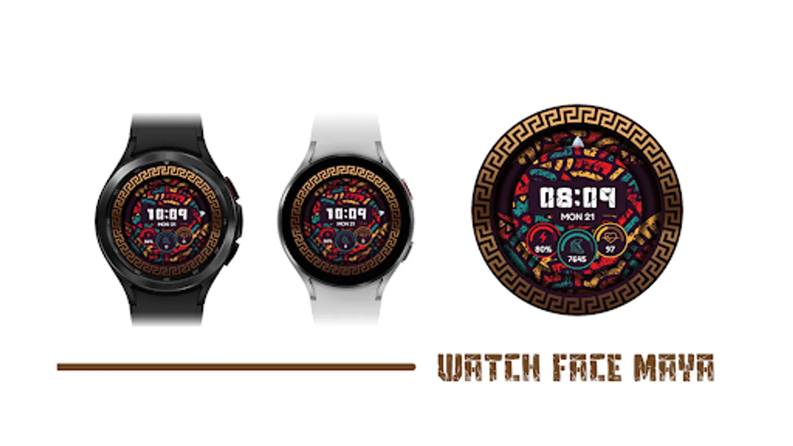 Watch face for your Samsung Watch with an incredible Mayan-themed design.