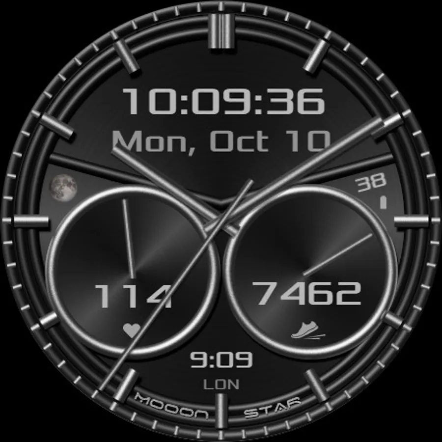 - The watch face includes the Always-On feature with green backlight when activated in the watch settings.