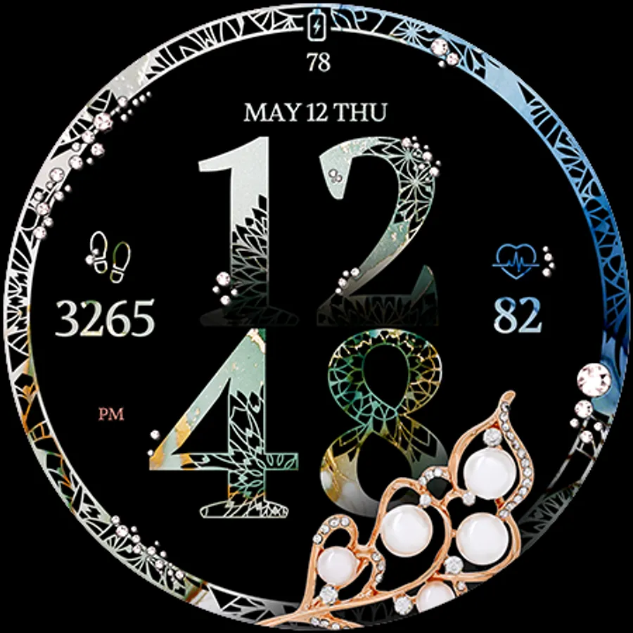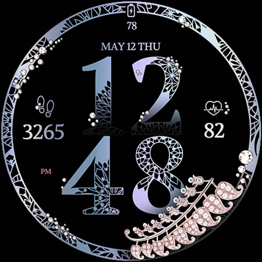 PER010 - Brooch contains 2 preset shortcuts, 2 customizable shortcuts, steps, heart rate, changeable backgrounds, changeable colors and more…