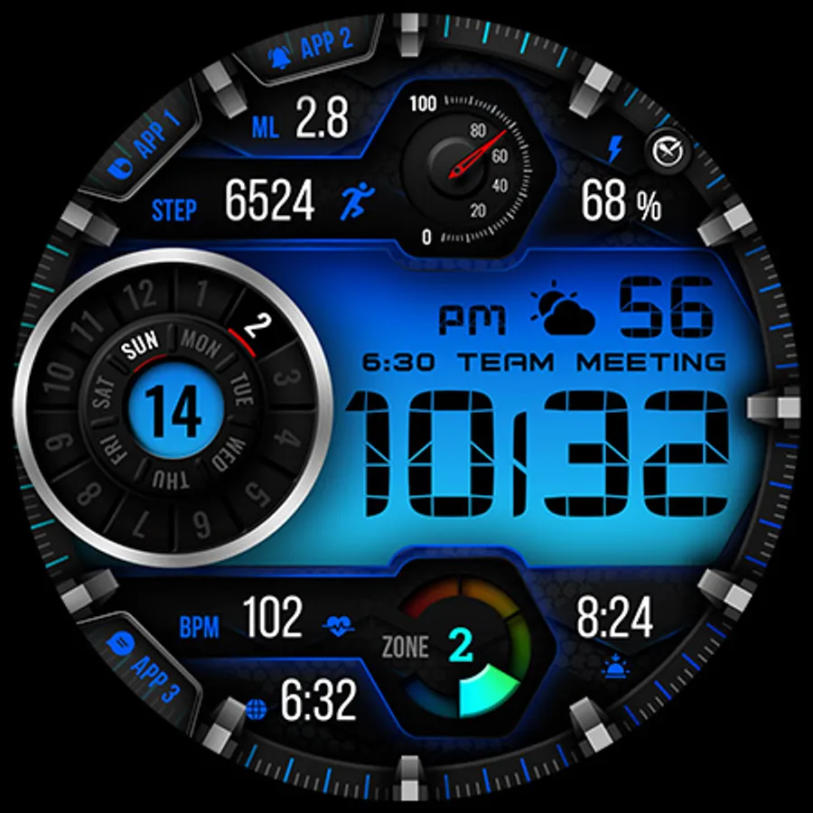 Touch and hold display to open customization mode. You can customize the field with any data you want. For example, you can select weather, time zone, sunset/sunrise, barometer, next appointment, and more.