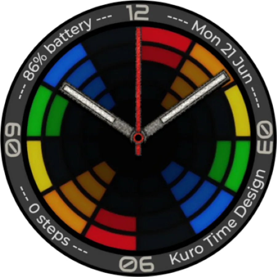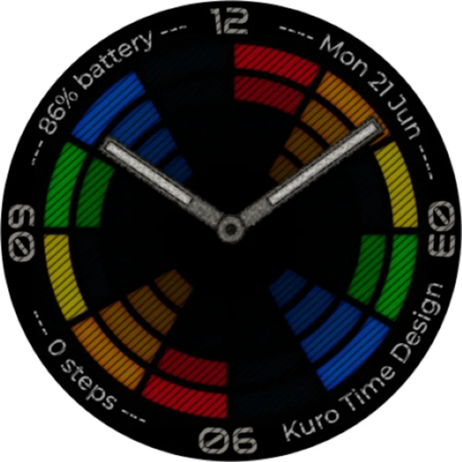 This animated watchface for Wear OS watches tries to capture the vibe of old music displays in a fun circular shape with colored segments. To celebrate the pride month, we offer it for free in rainbow colors.