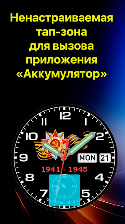 - Displaying the date and day of the week in Russian and English (English is a priority and is shown if the smartphone menu is not in Russian)