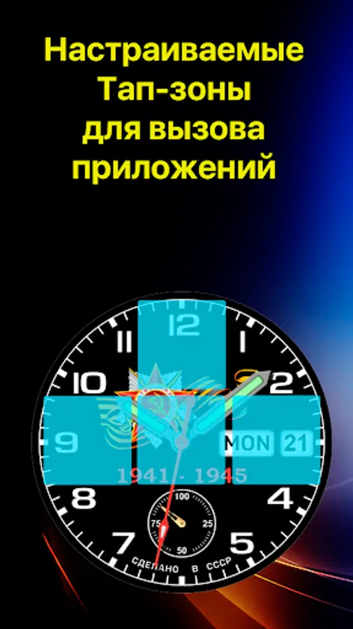 - 4 customizable tap-zones that allow the user to independently customize the called application. To configure these tap zones, you must enter the watch face settings menu