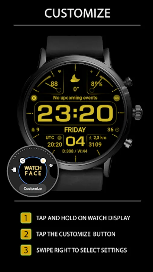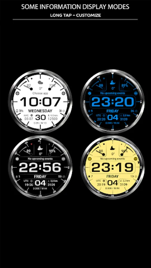 - Customizable widget - weather, sunrise/sunset, world time, etc.;