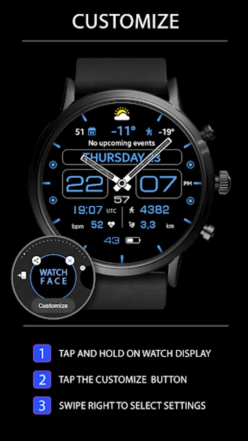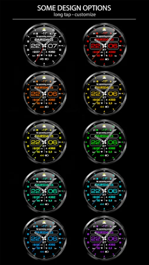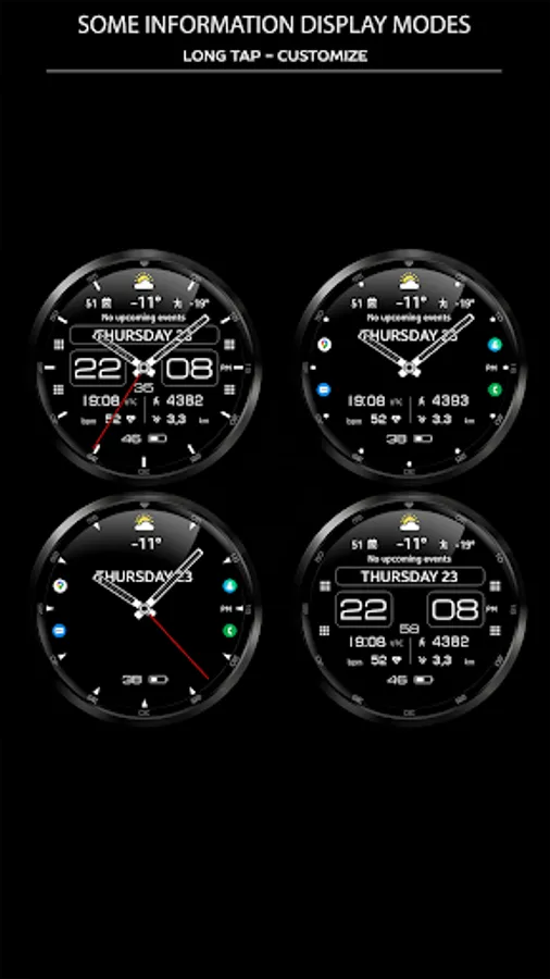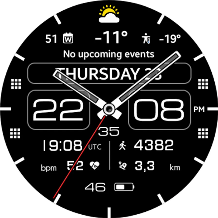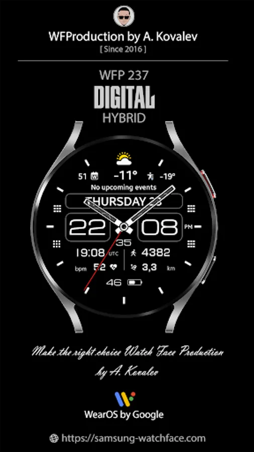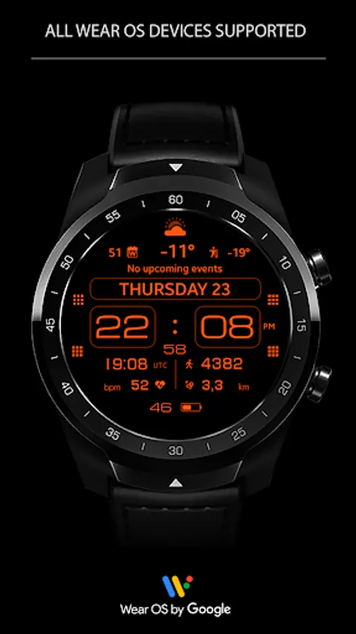 This watch face supports Wear OS devices with API Level 28+.