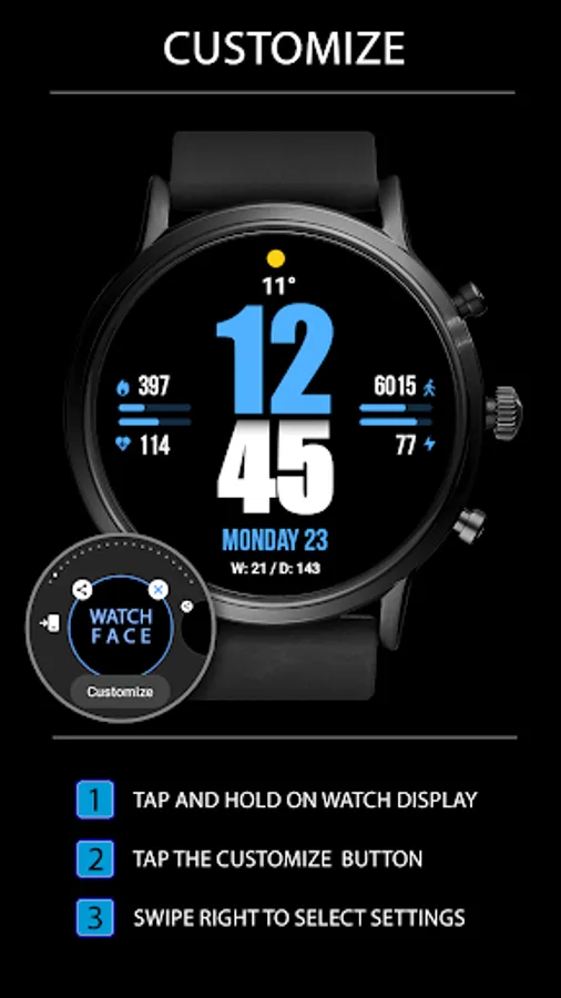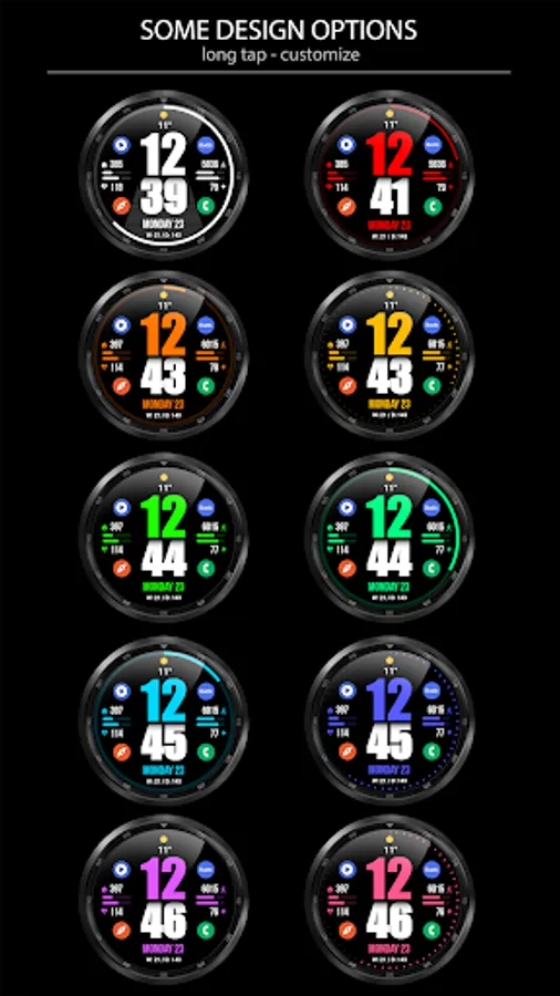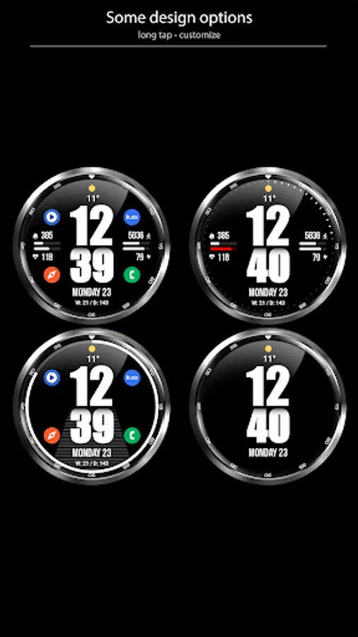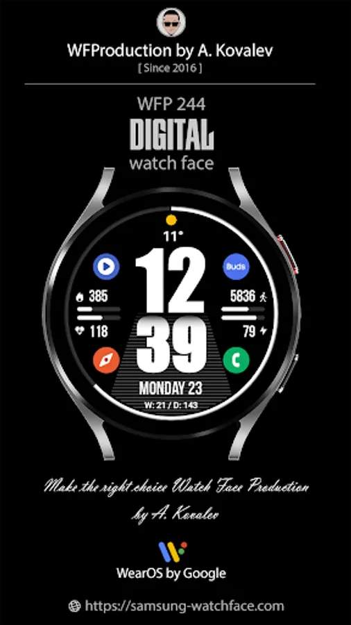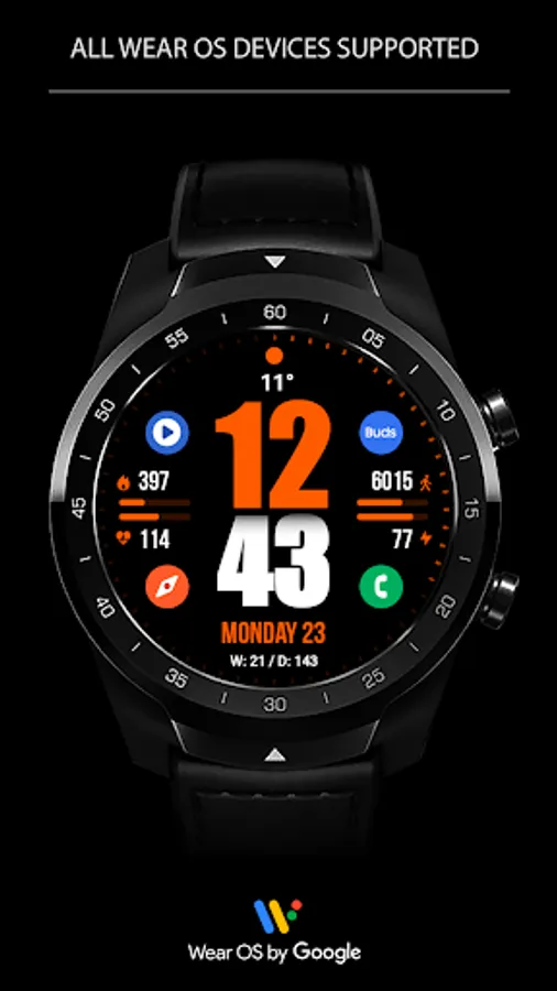 This watch face supports Wear OS devices with API Level 28+.