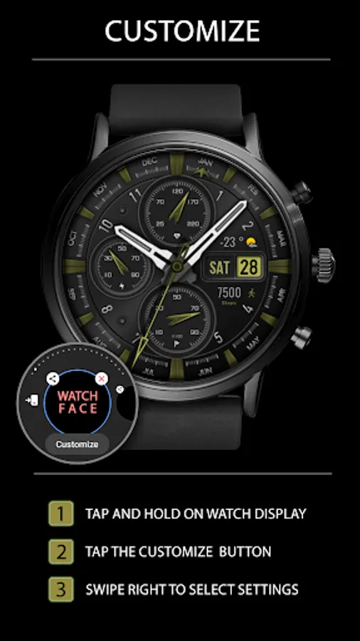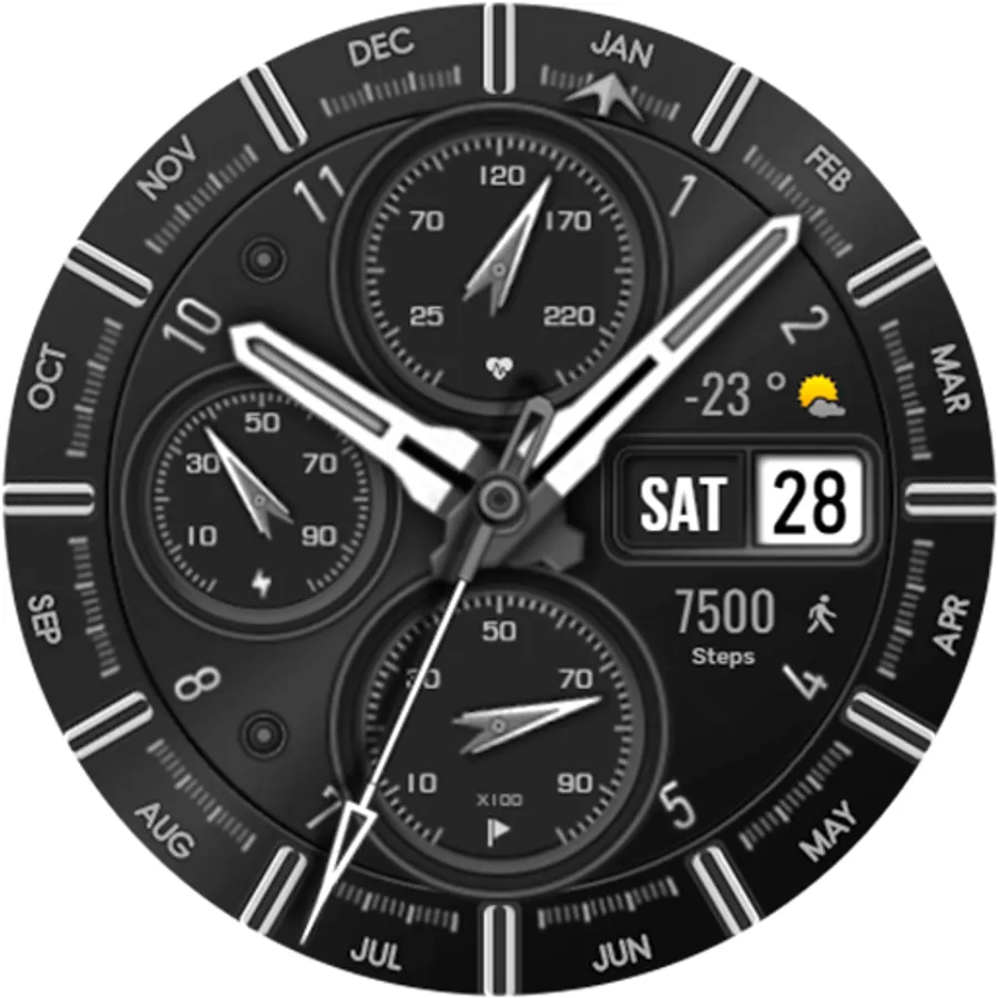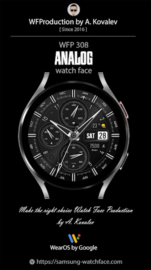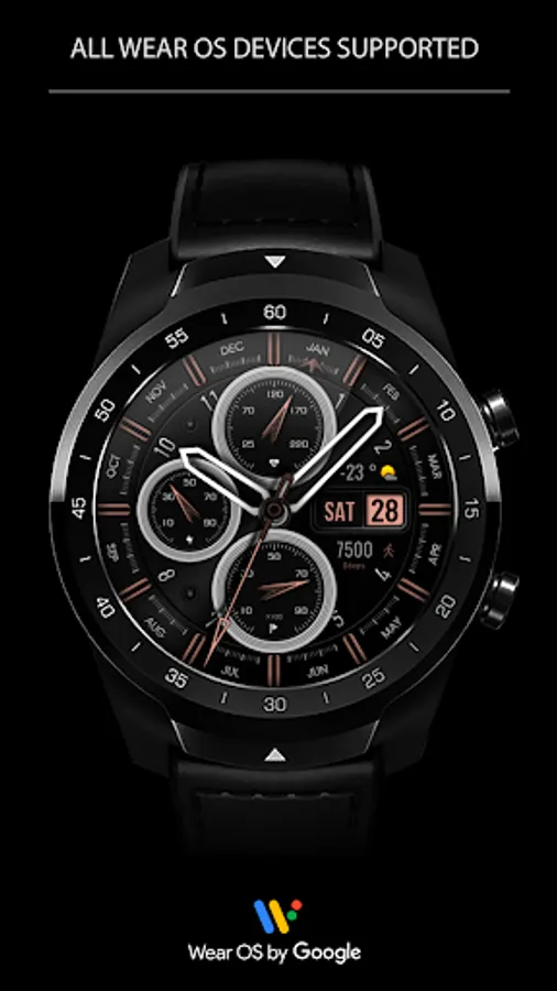 This watch face supports Wear OS devices with API Level 28+.