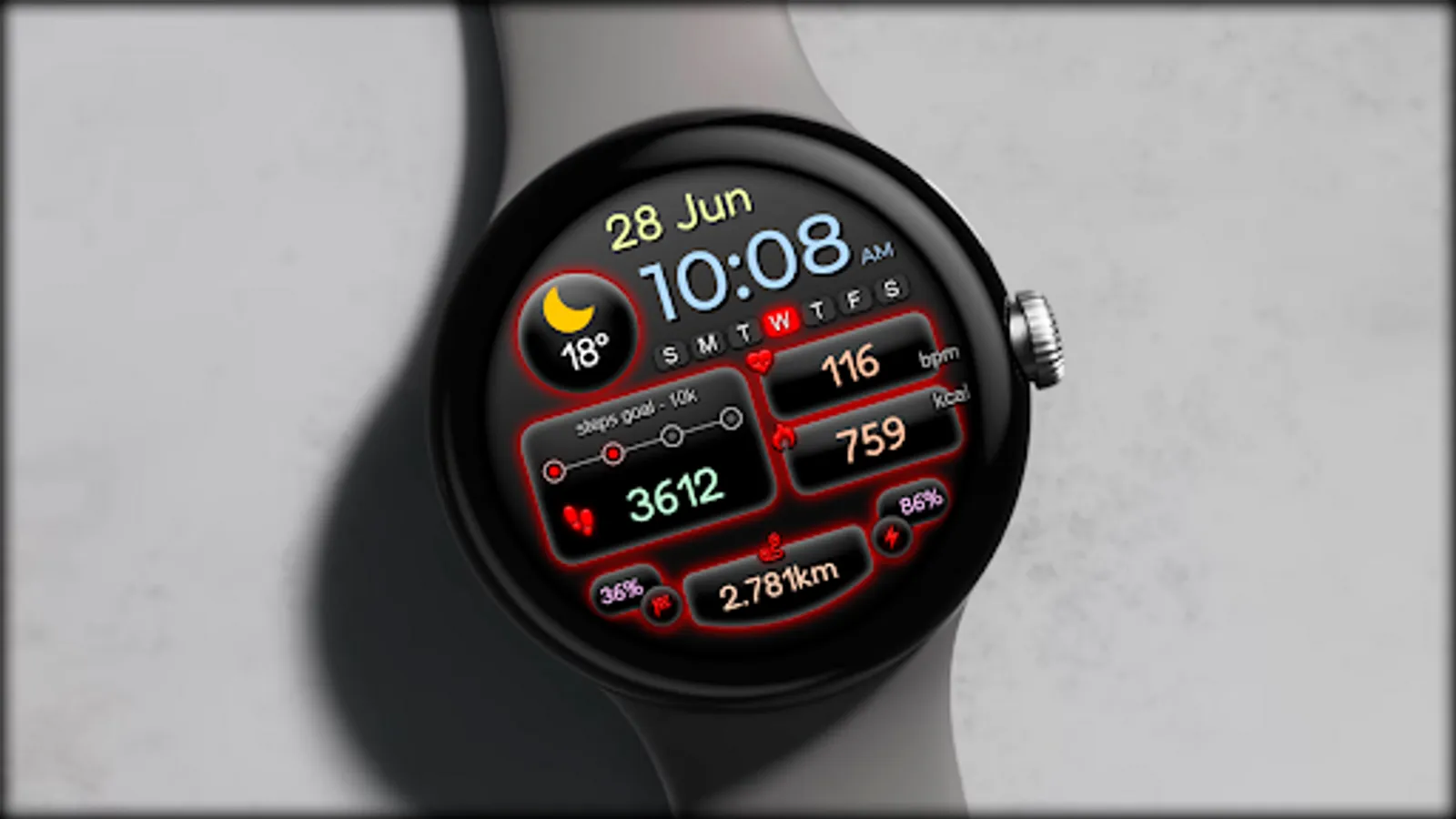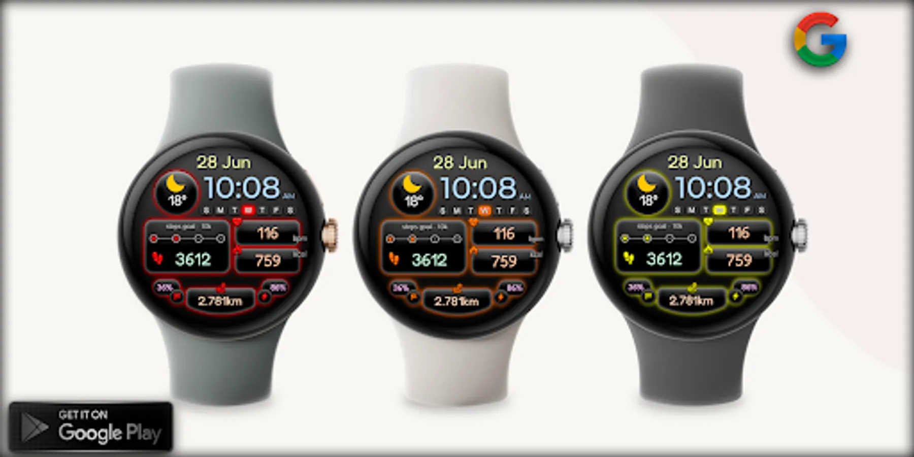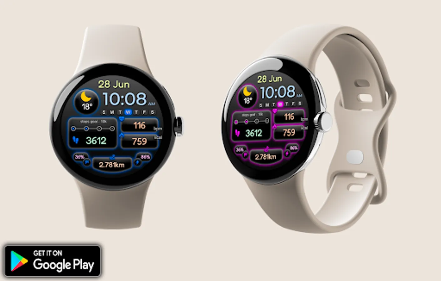 -Change color. Use the watch face settings to change the color