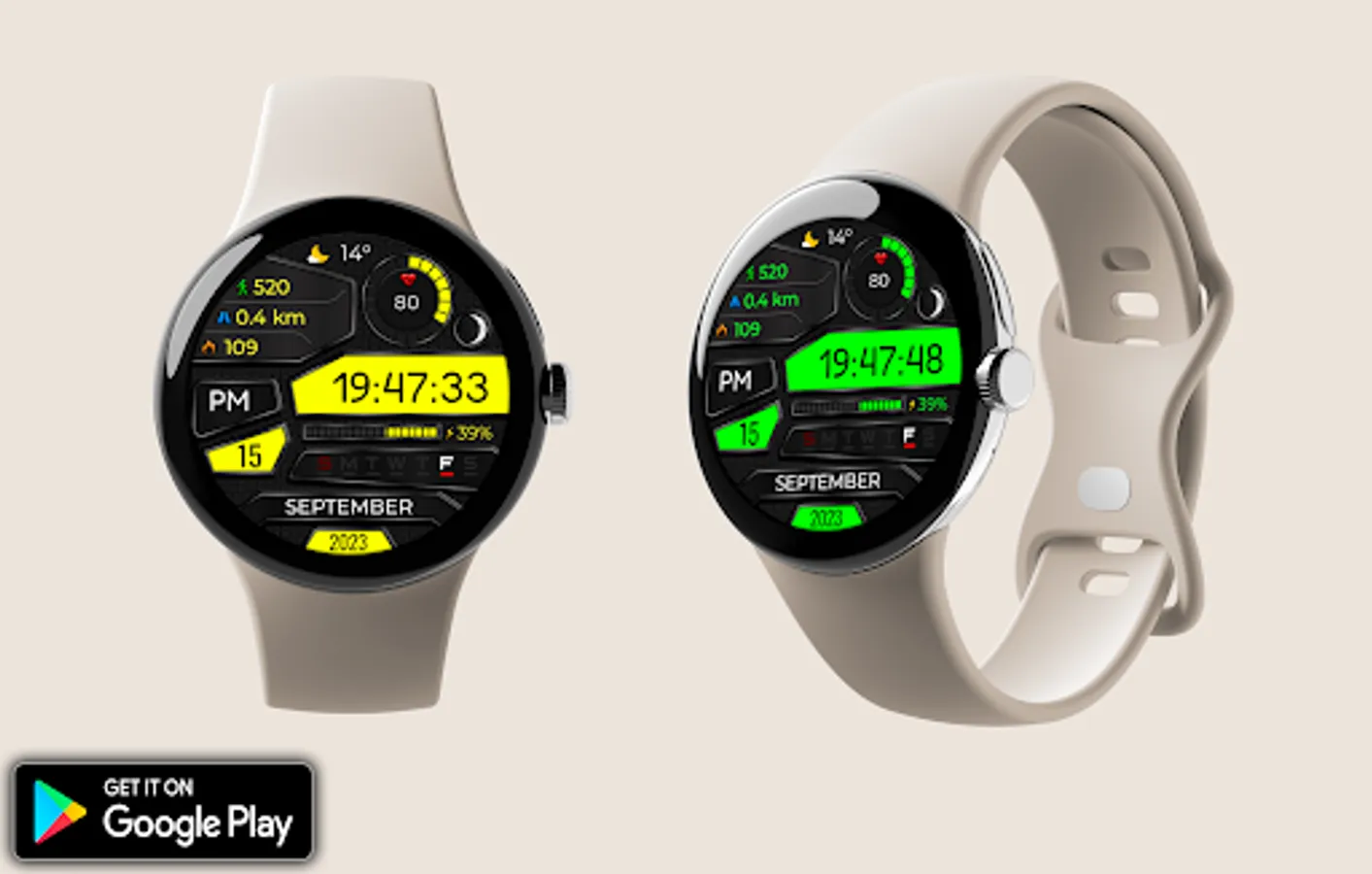 -Change color. Use the watch face settings to change the color
