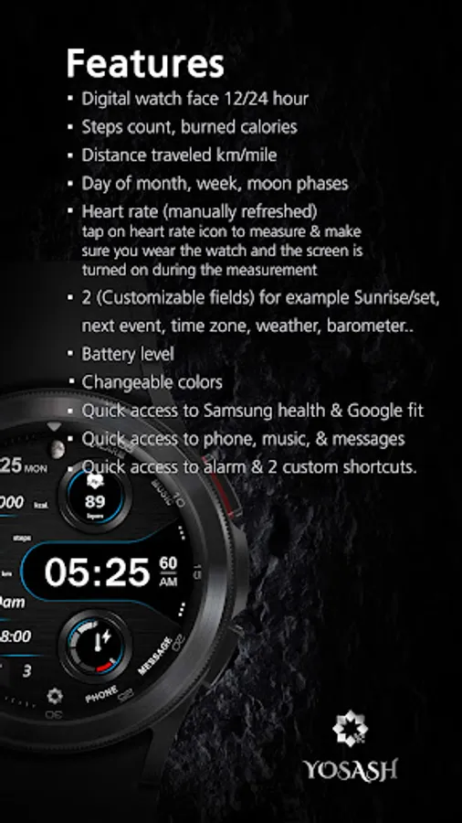 - Quick access to Samsung health & google fit