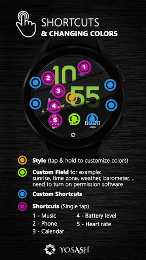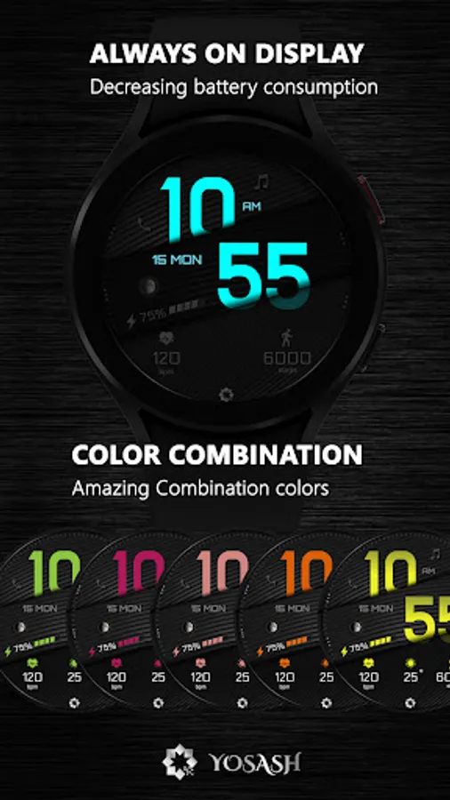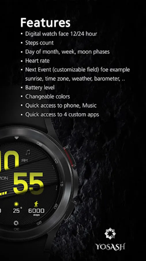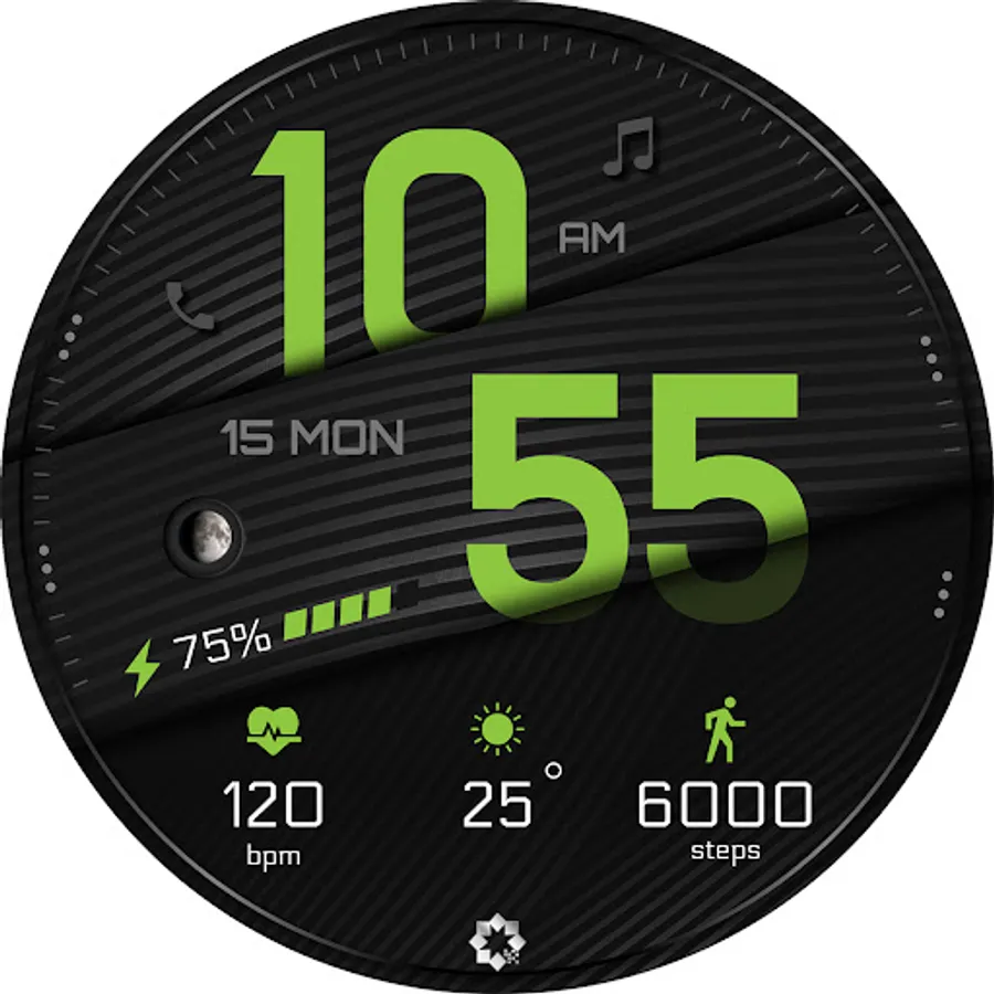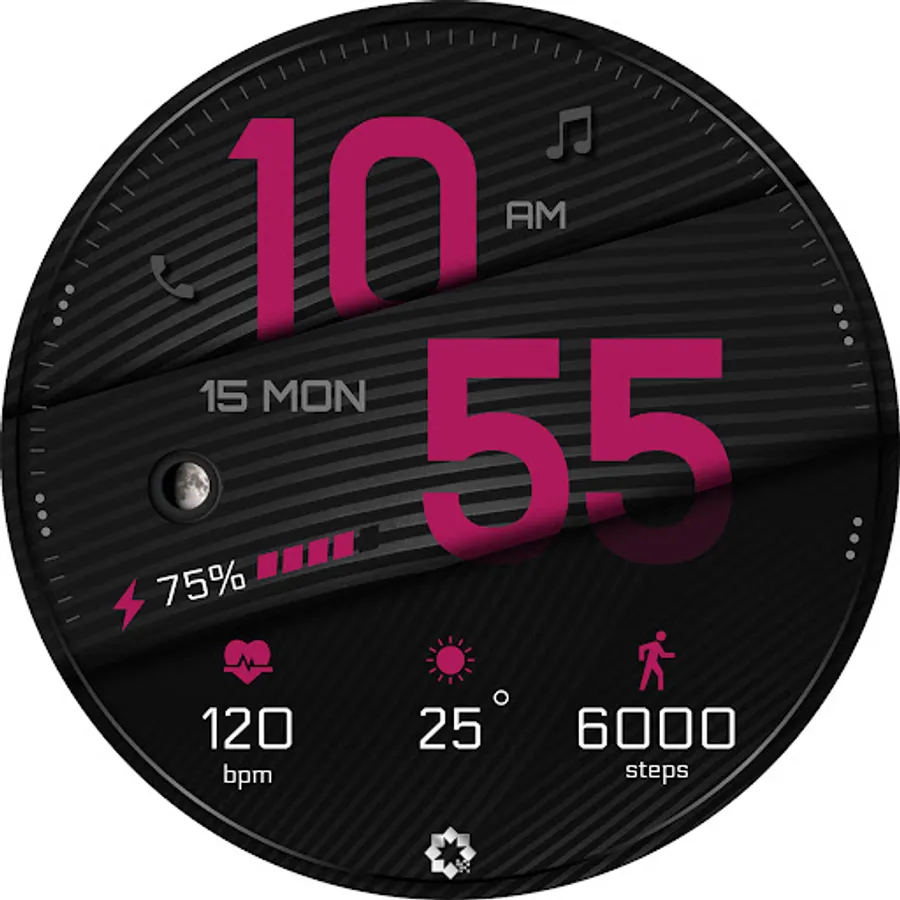 - Digital watch face switchable to 12/24 hour via Phone Settings