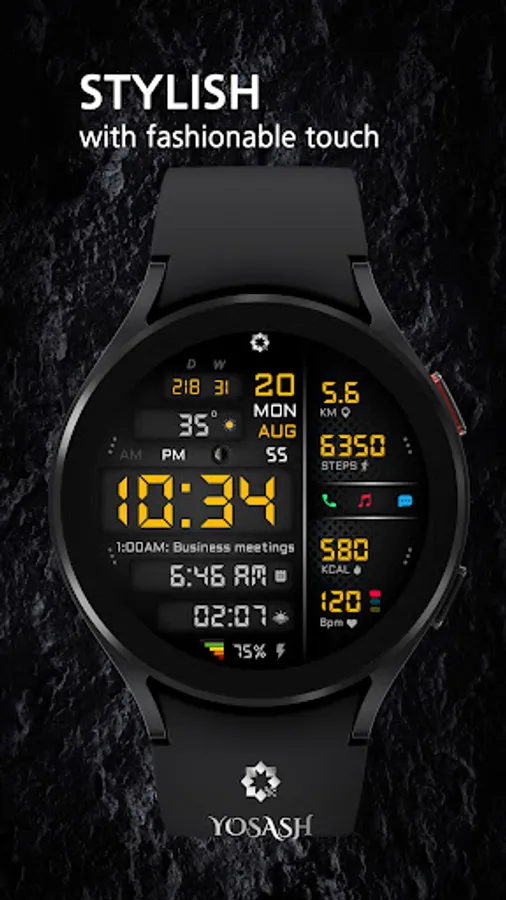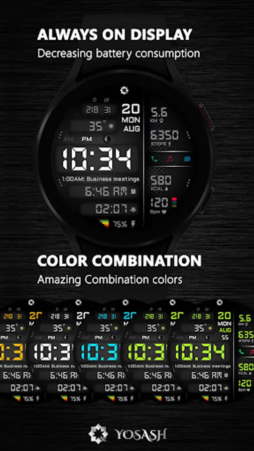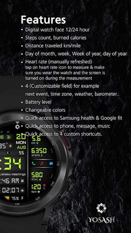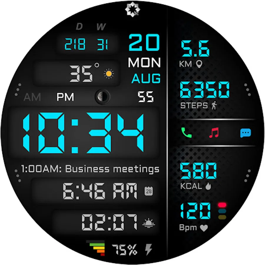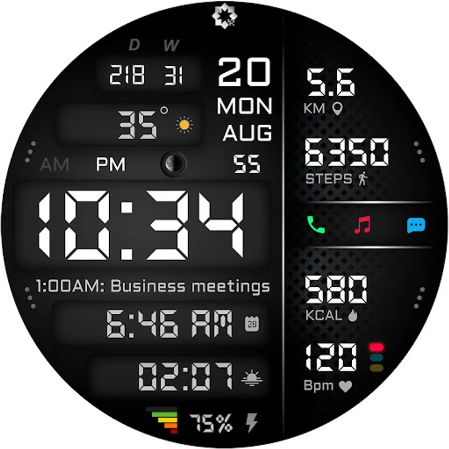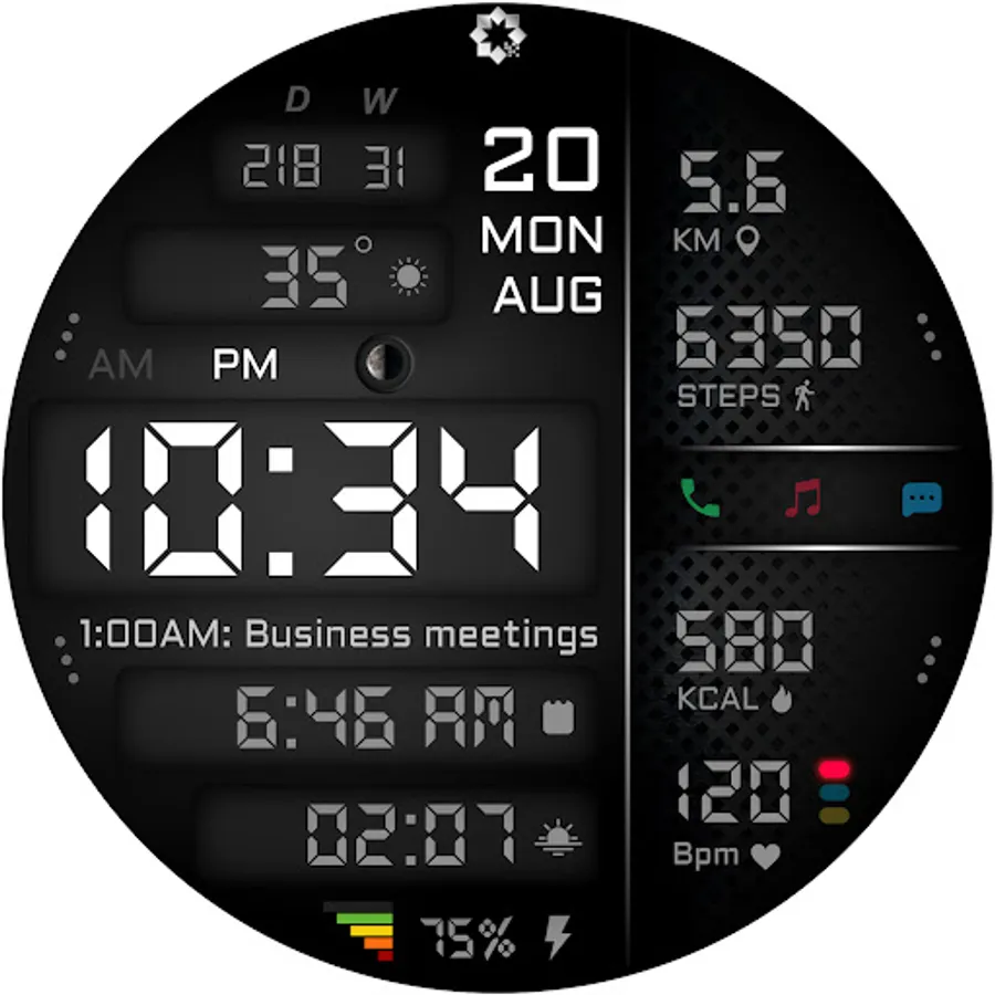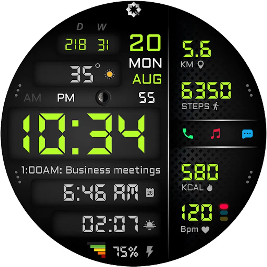 - Digital watch face switchable to 12/24 hour via Phone Settings