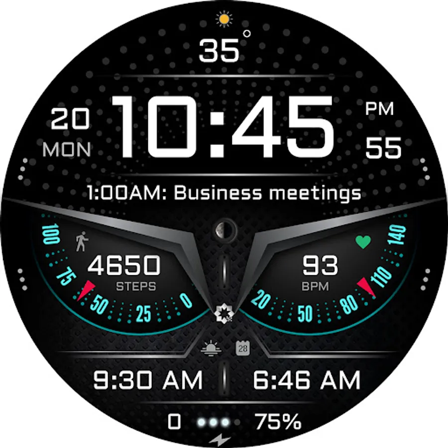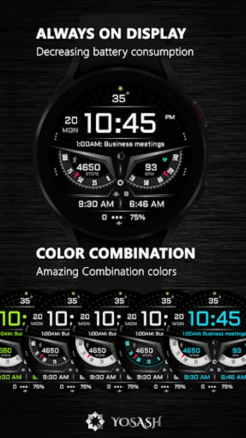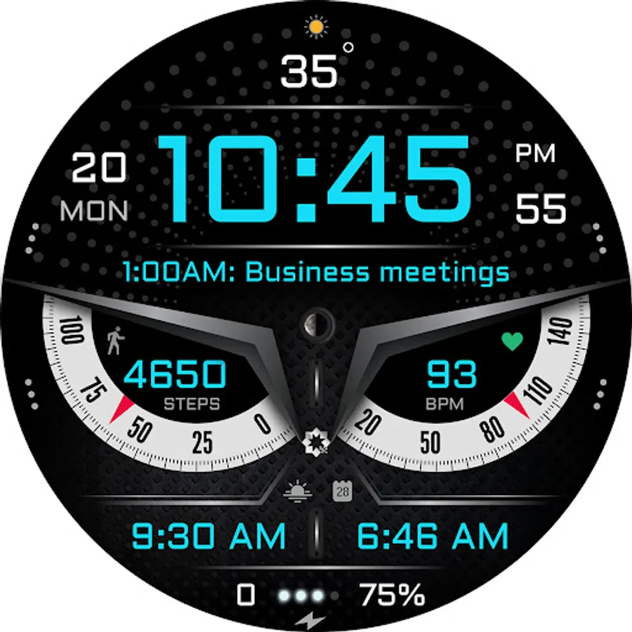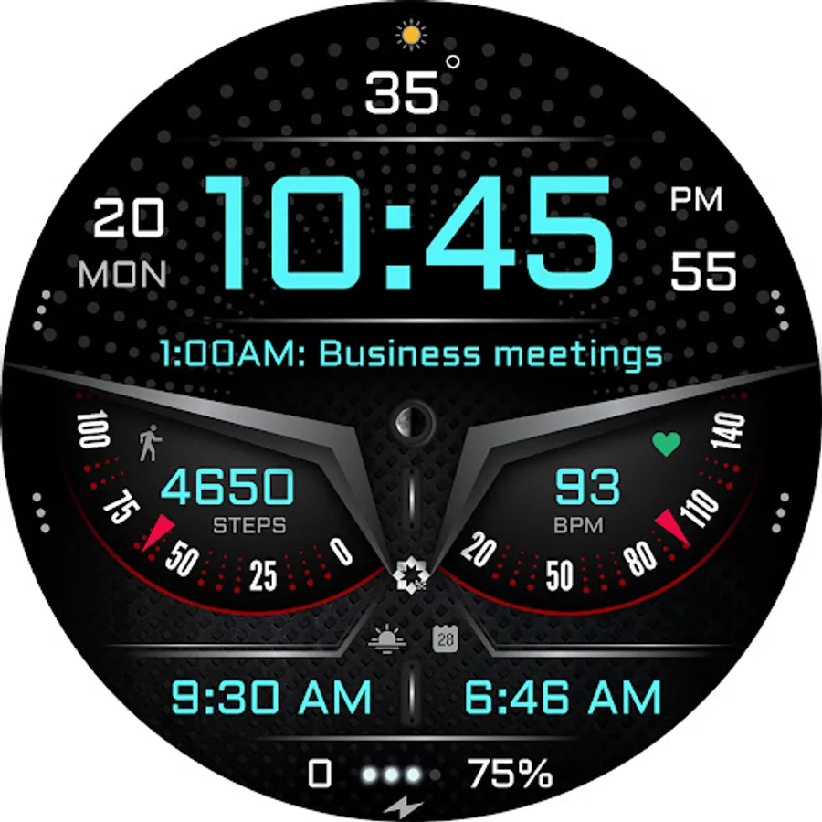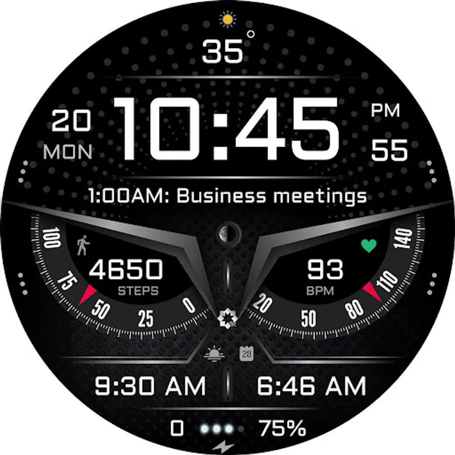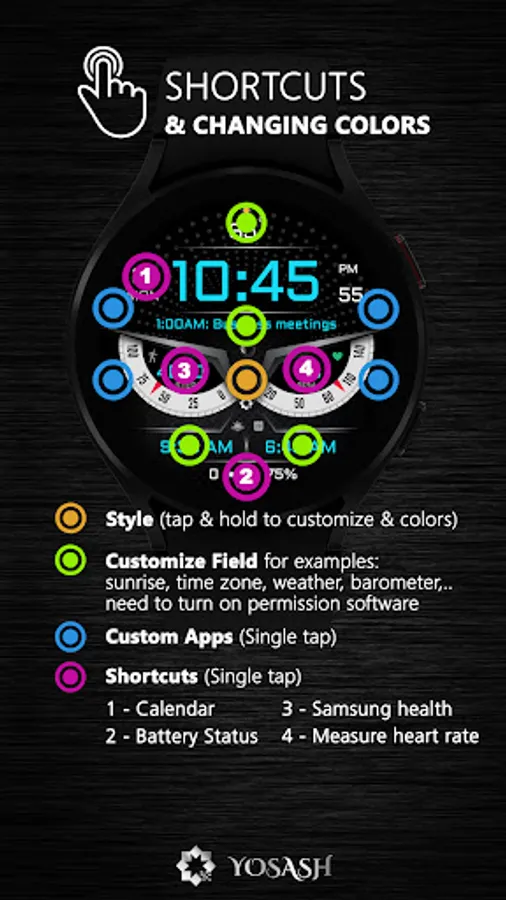 - Changeable Digits color, sub dial style (tap & hold to customize & change colors)
