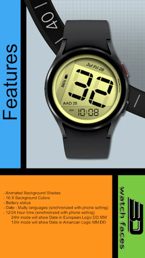 The AAD25 Pastel Series is a Modern Digital watch face optimised for: