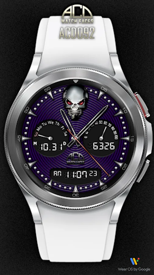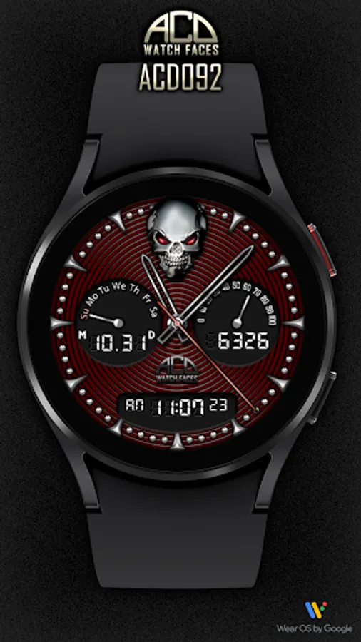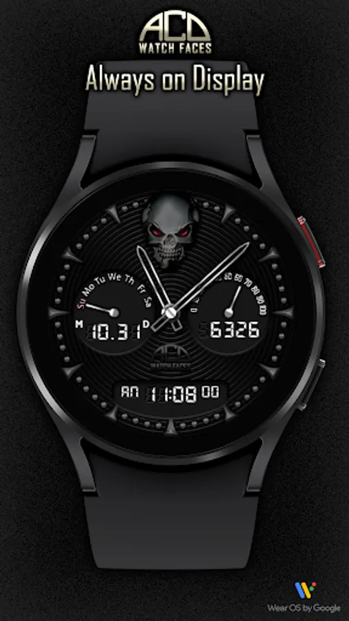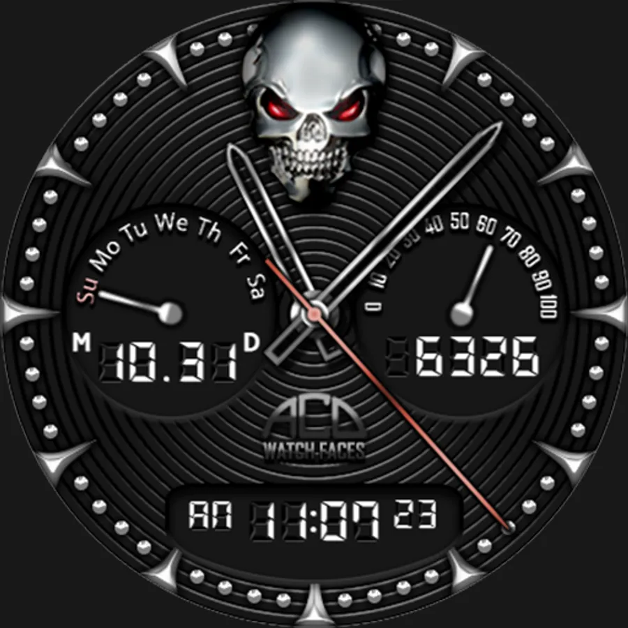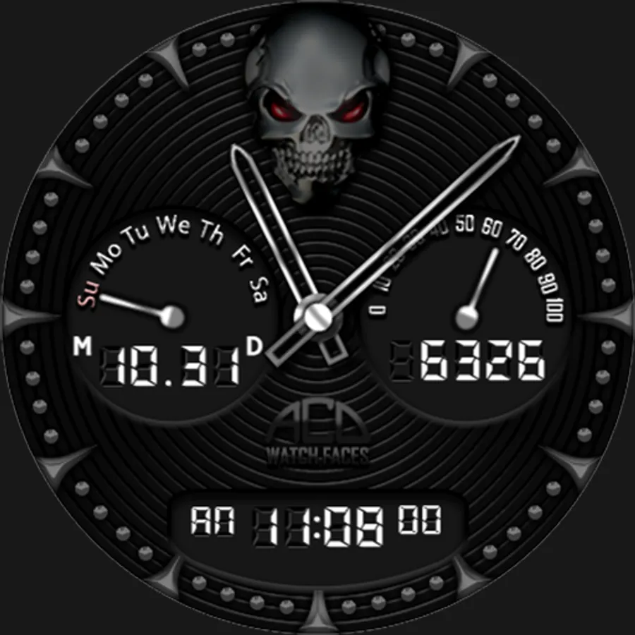 Halloween-themed watch face with an animated skull. An elegant watch face to have on this Halloween and not only.