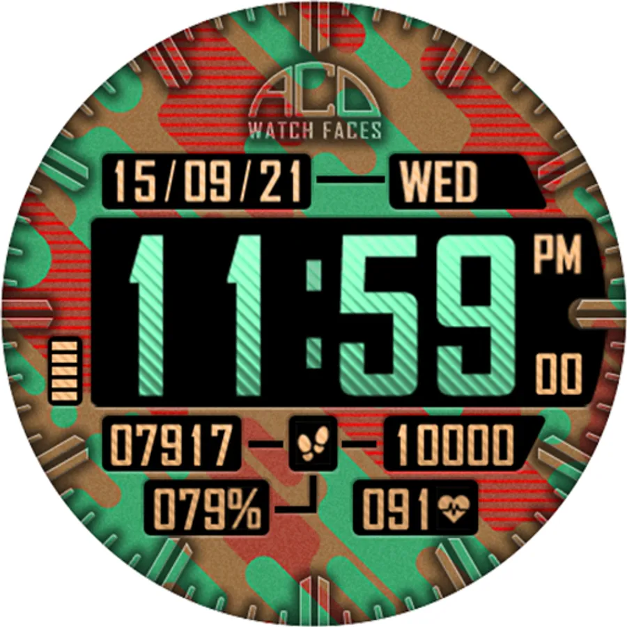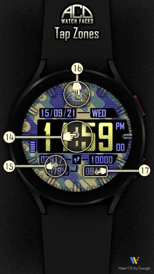 14. Tap once on the indicated area by the picture to change between 13 colors of the hour and minutes
