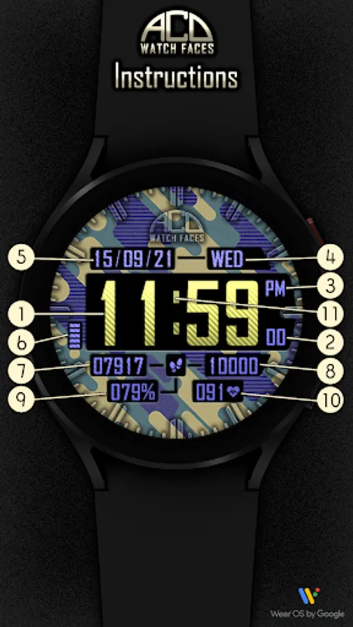 15. Tap once on the indicated area by the picture to change between 13 colors of the digital data