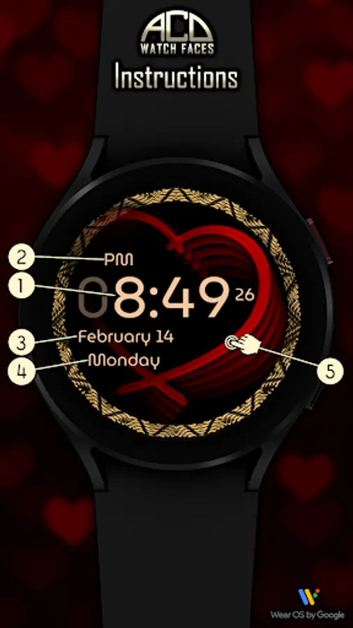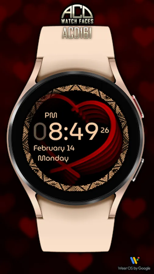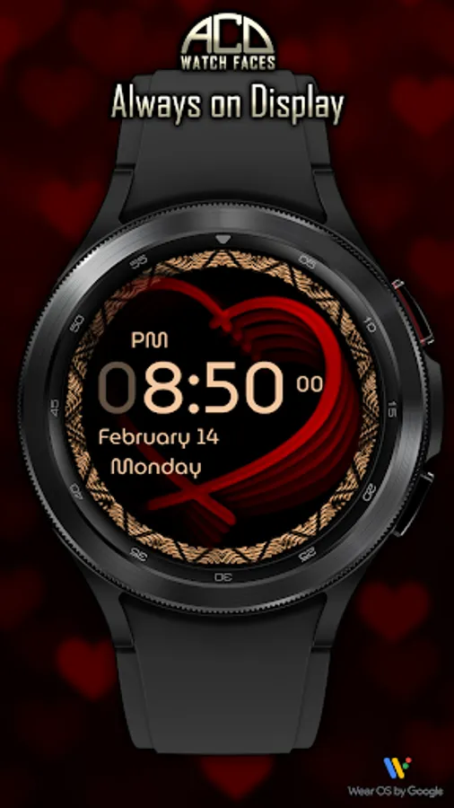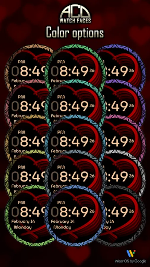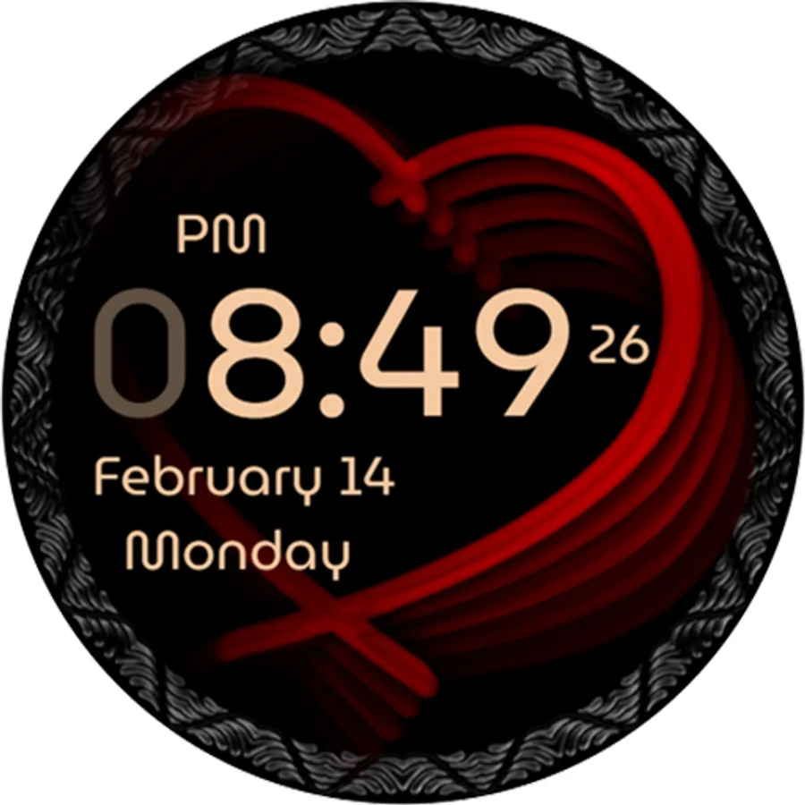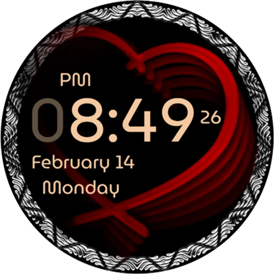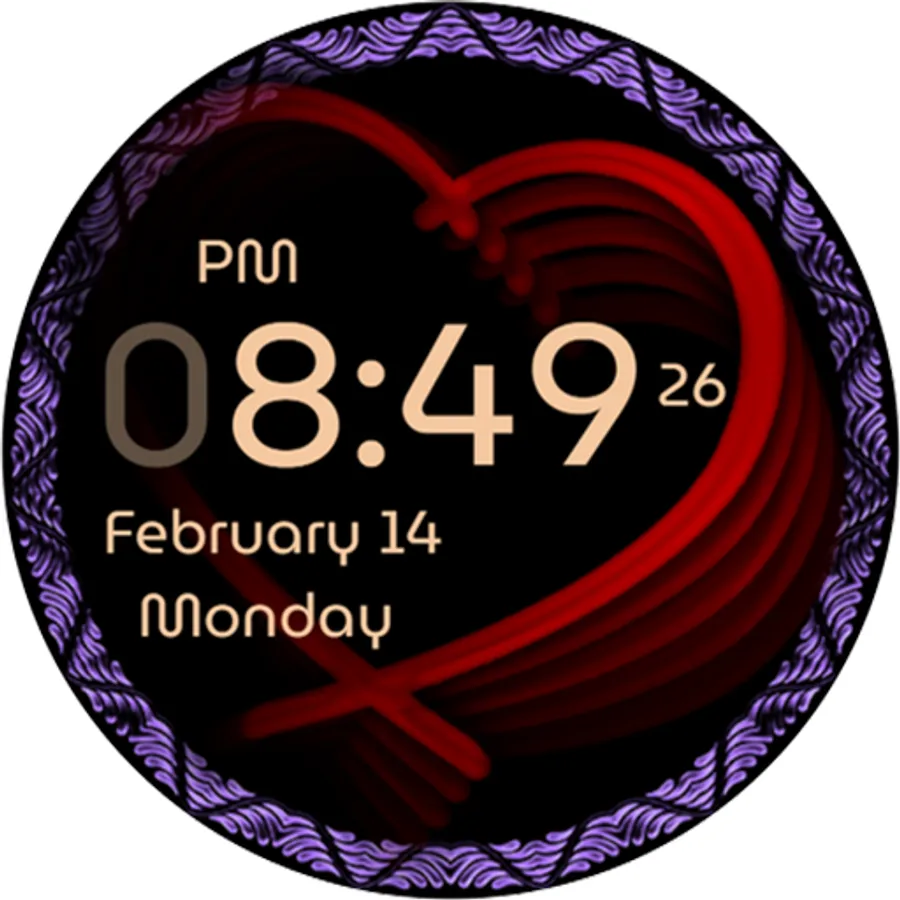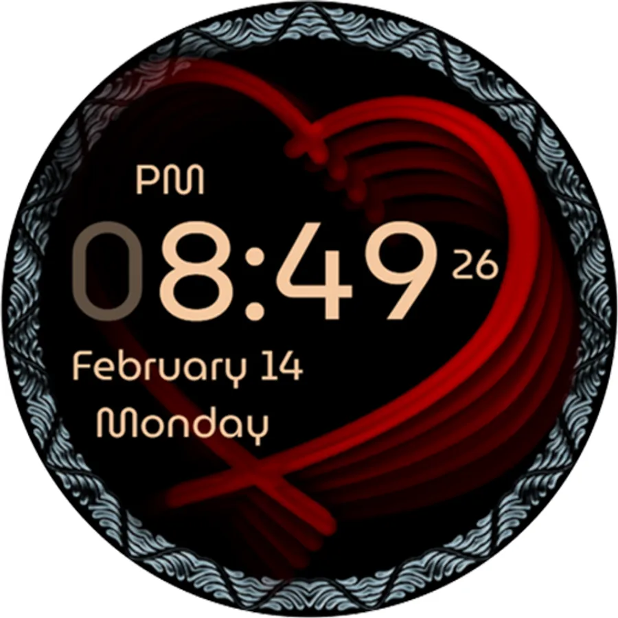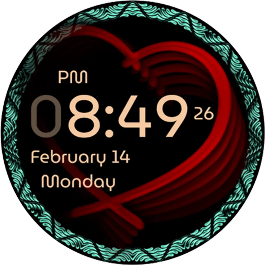 Minimalist and elegant watch face with a stylish red heart and multiple colors border.