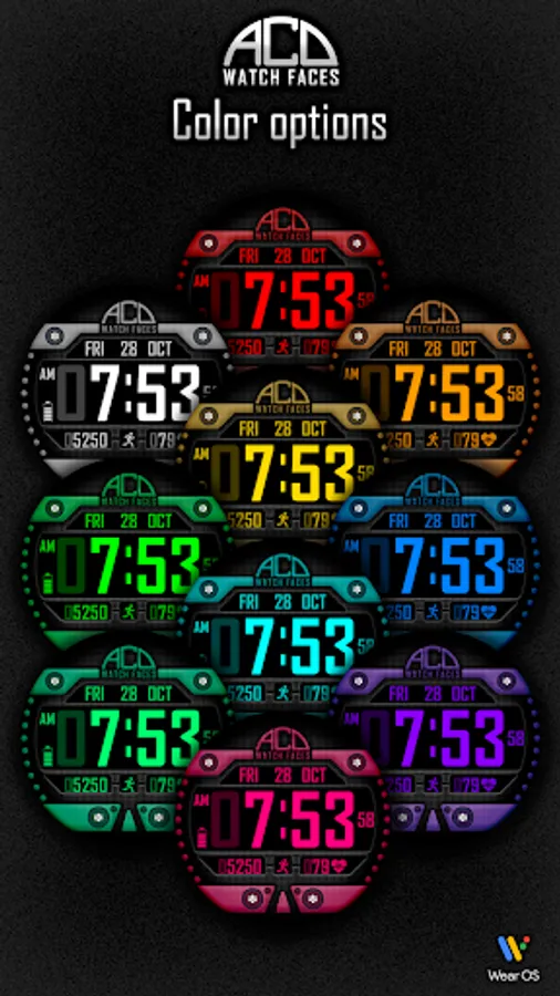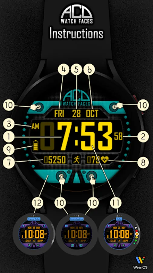 11. 10 font colors. Change from the Customize menu of the watch face.