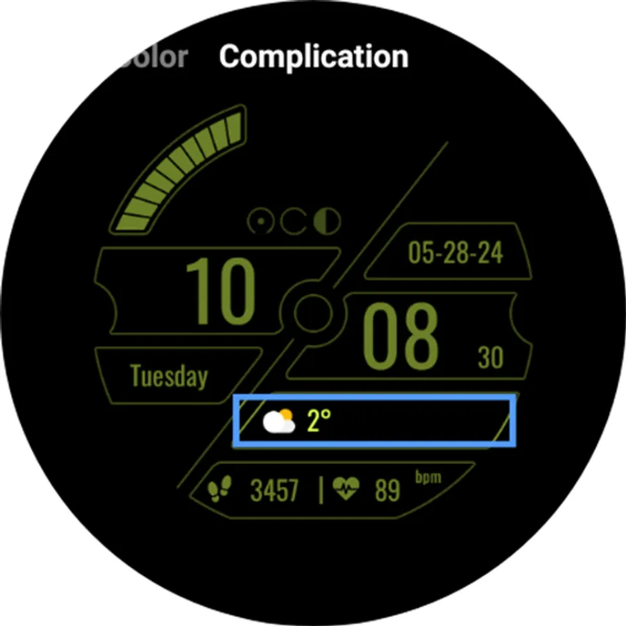 6. Custom complication (default Next Event). You can choose from the customization menu of the watch face from the many complications like Weather, Sunrise-Sunset, World Clock, and many more.