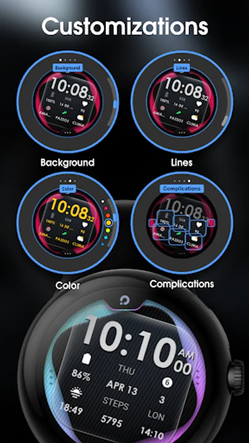 - Customizable complications