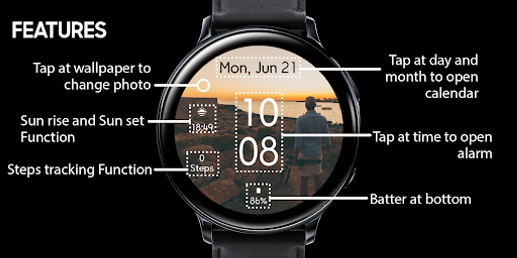 This Watch Face contains different images which gives it a unique look and user-friendly shortcuts on the watch, and a phone companion app.😎